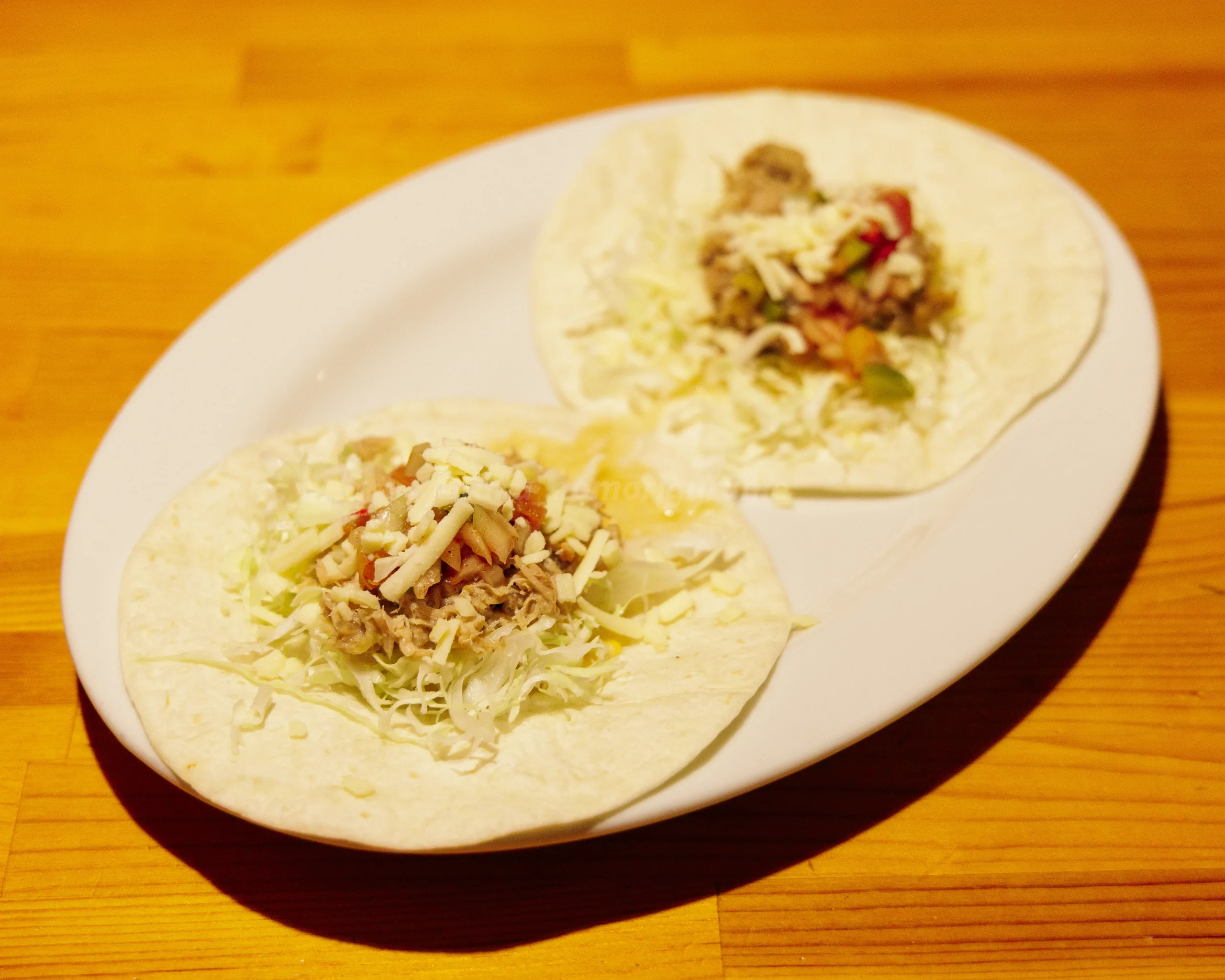 毎週火曜のディナーは、タコチューズデー(TACO TUESDAY)と銘打っており、タコス各種2P(チキン、ポーク、ビーフ、野菜)が500円均一とお得に楽しめる。