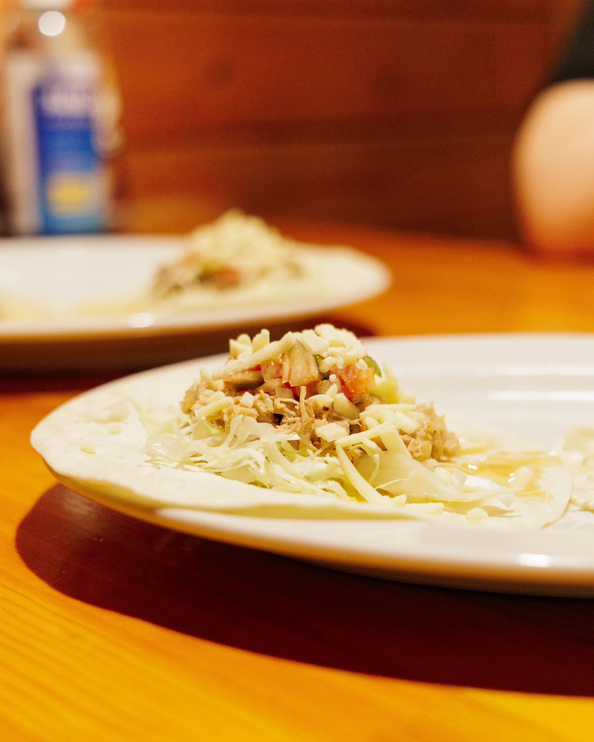 こちらはポーク。タコスの生地は素焼きされた柔らかいものとなっている。
