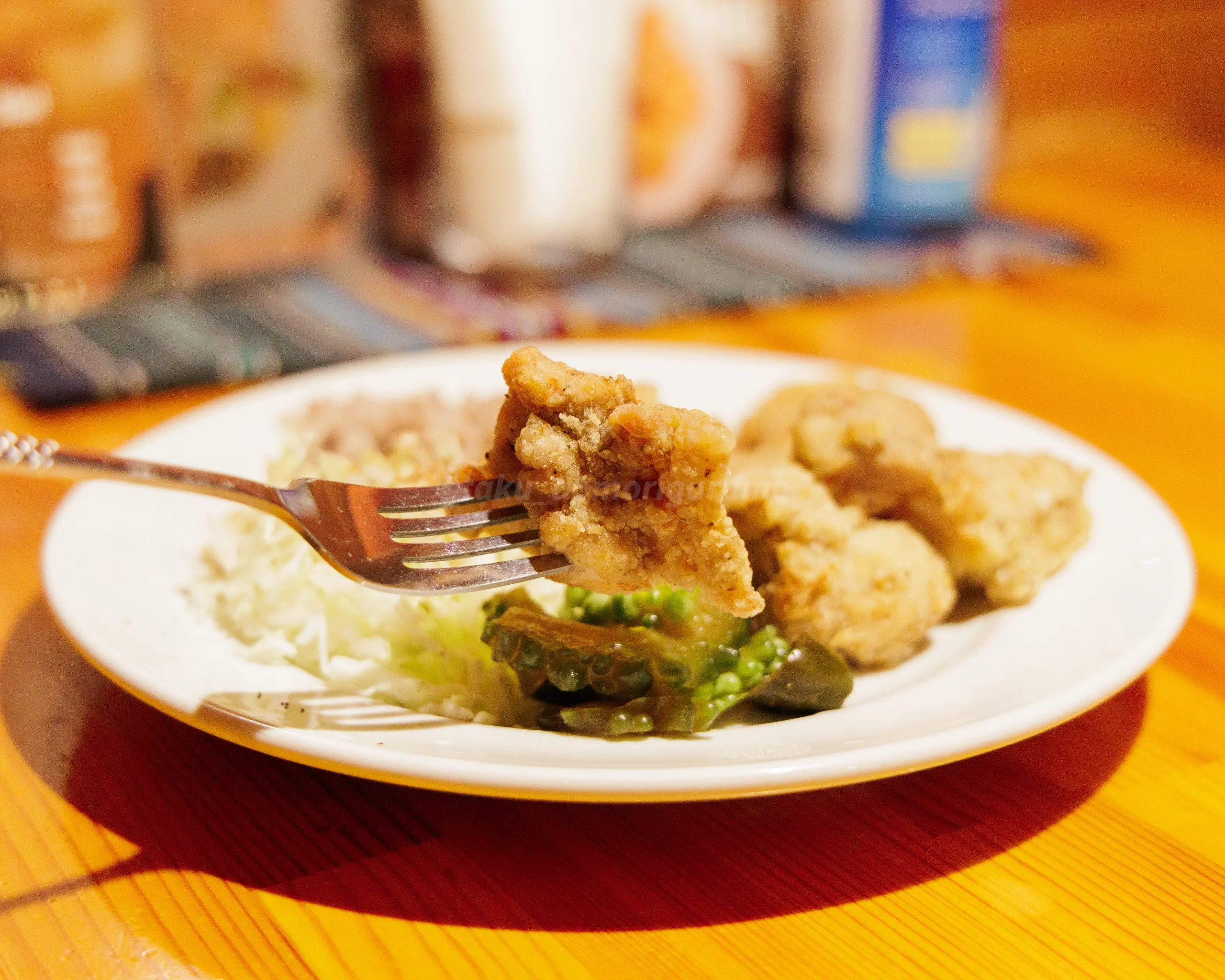 こちらのチキンは甘辛系というよりは、シンプルに塩味が感じられる味付けとなっていた。