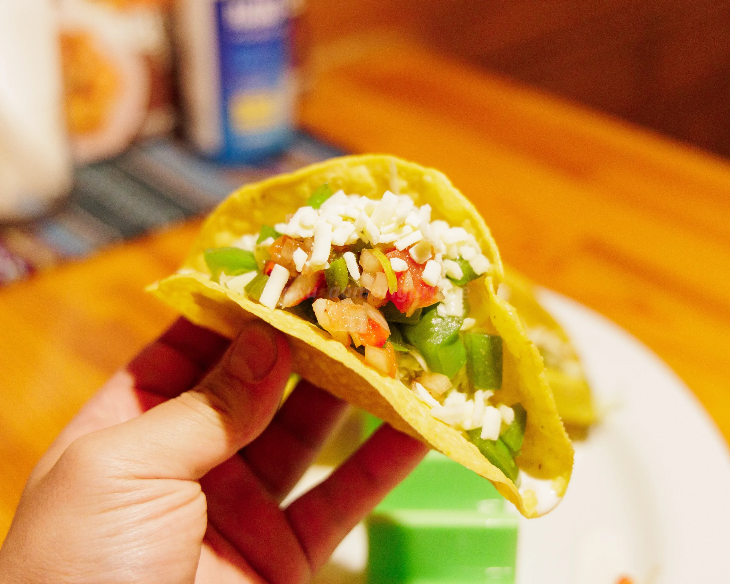 肉好きな私としては、ベジの具材がどんな構成なのかイマイチ想像できなかったので、フライドシェル(素揚げされたタコス生地)にてオーダー。