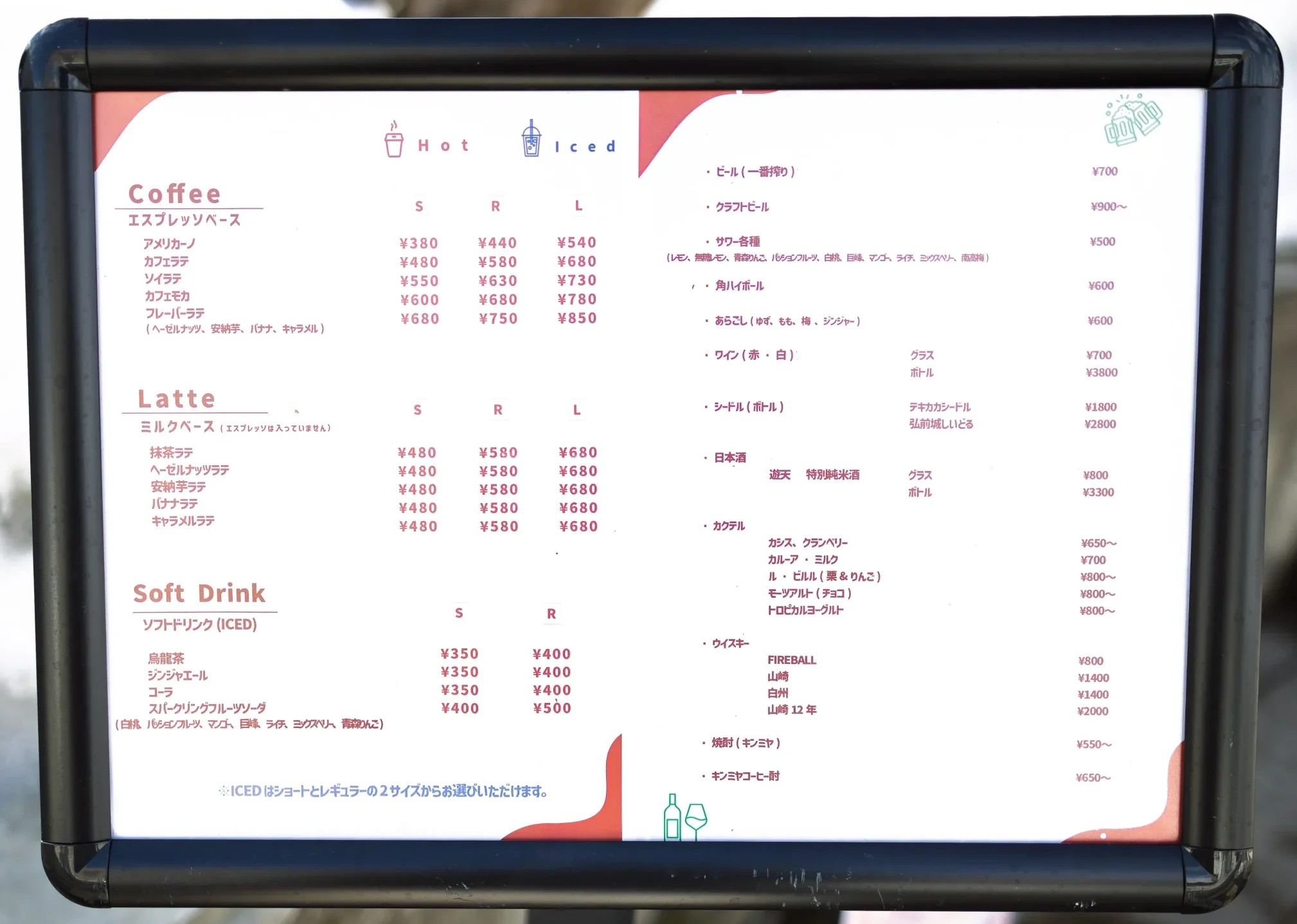 カフェ利用はもちろん、アルコール提供やテイクアウトにも対応しており、用途の幅が広い点も魅力。弘前市で落ち着いて過ごせるコーヒー店を探している方におすすめできる一軒です。