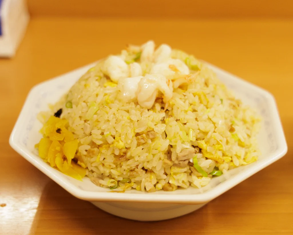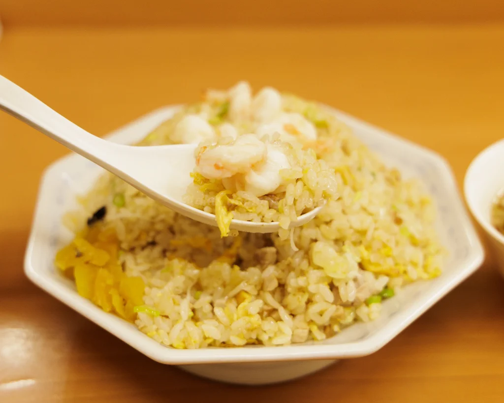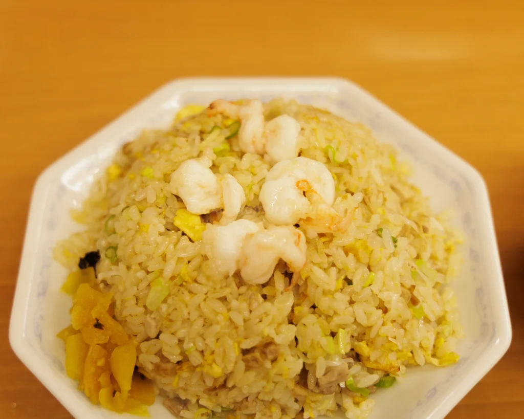 ラーメンとほぼ同時に、エビチャーハンも登場。