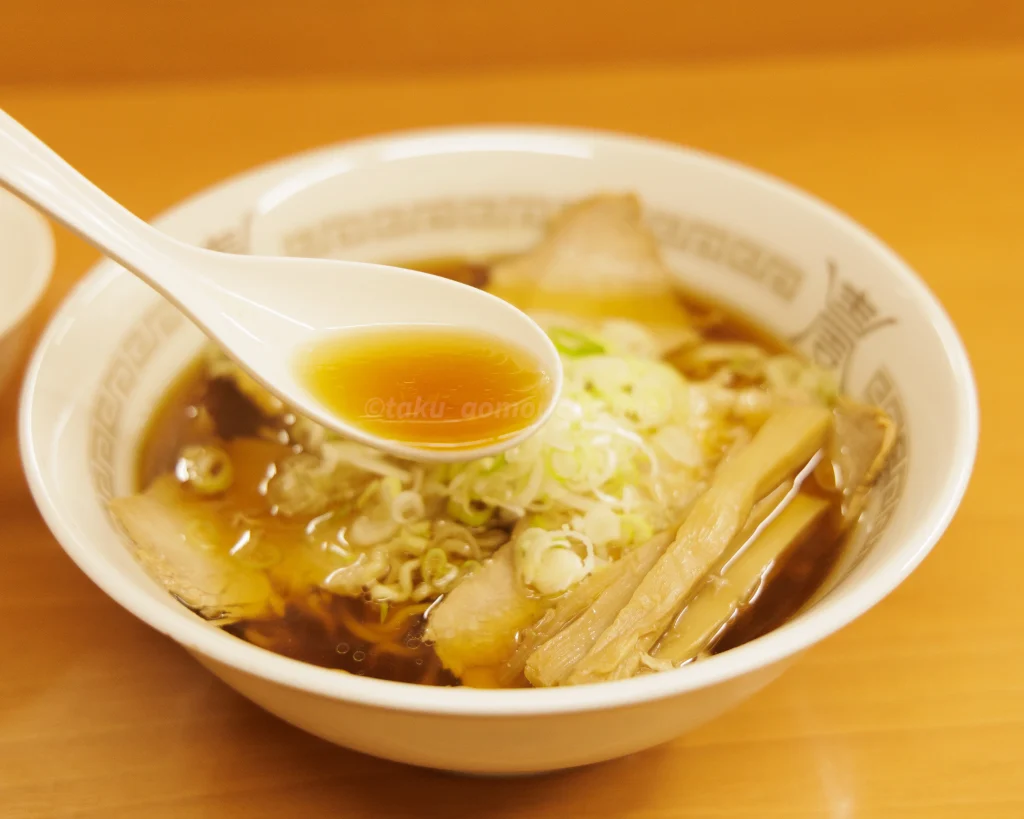 伝統的な津軽の煮干醤油系ラーメンを食べたことのある方なら、ビジュアルだけで匂いと味わいが想像できるであろう、あのあっさり&後味スッキリ系の飽きのこないスープ。