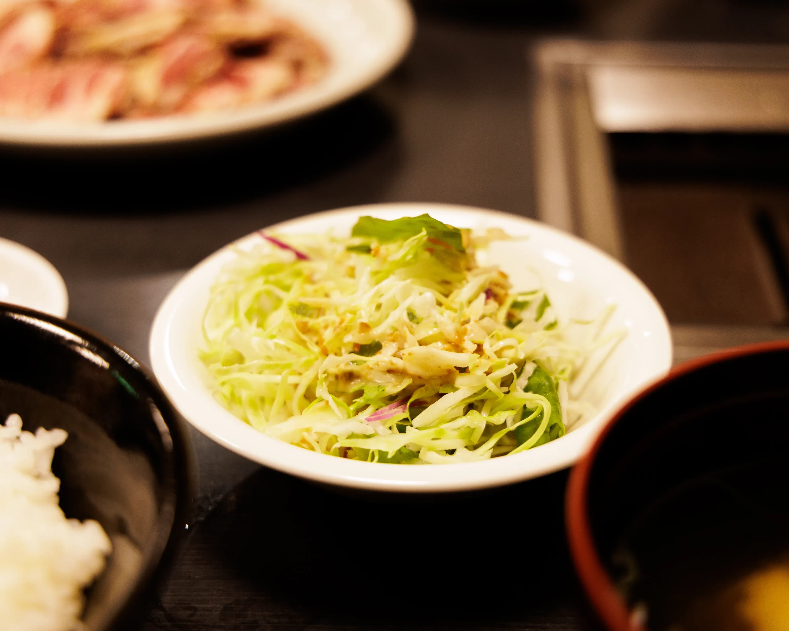 お肉以外で付いてくるのは、お味噌汁、ライス、サラダ、キムチ、お好きなソフトドリンク(1杯)となる。