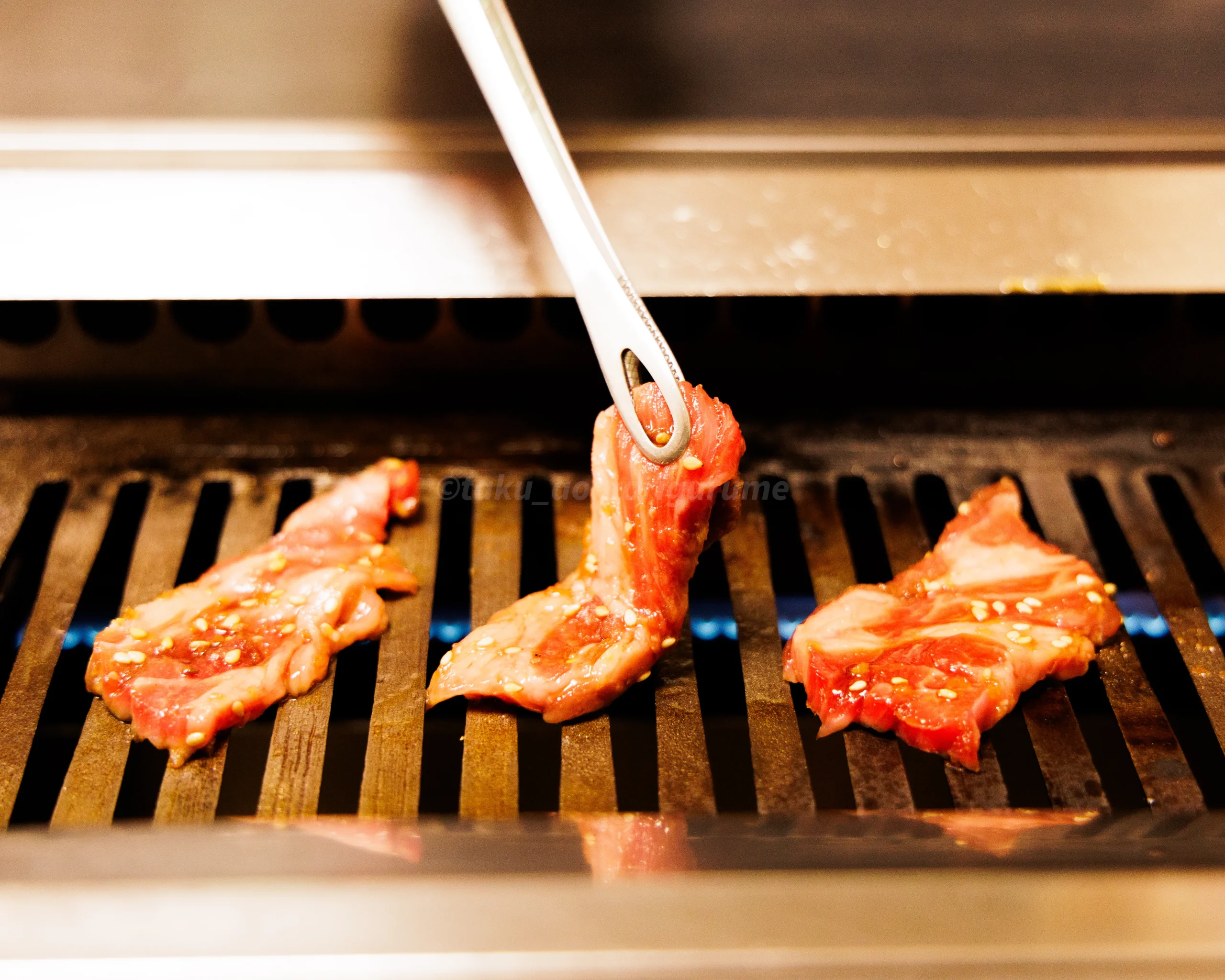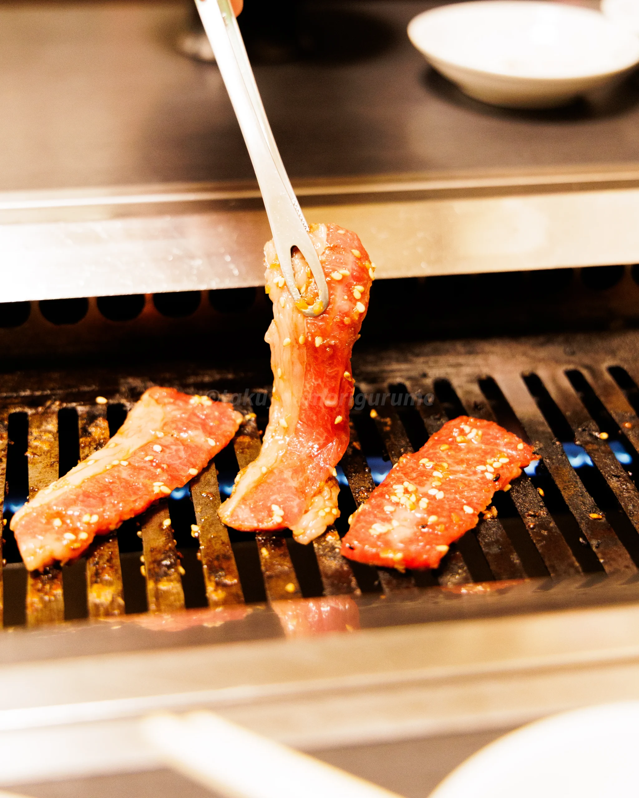 正直なところ、焼いている時は先ほどのアメリカ牛と大して匂いやトングで持った時の差異は感じられなかった。