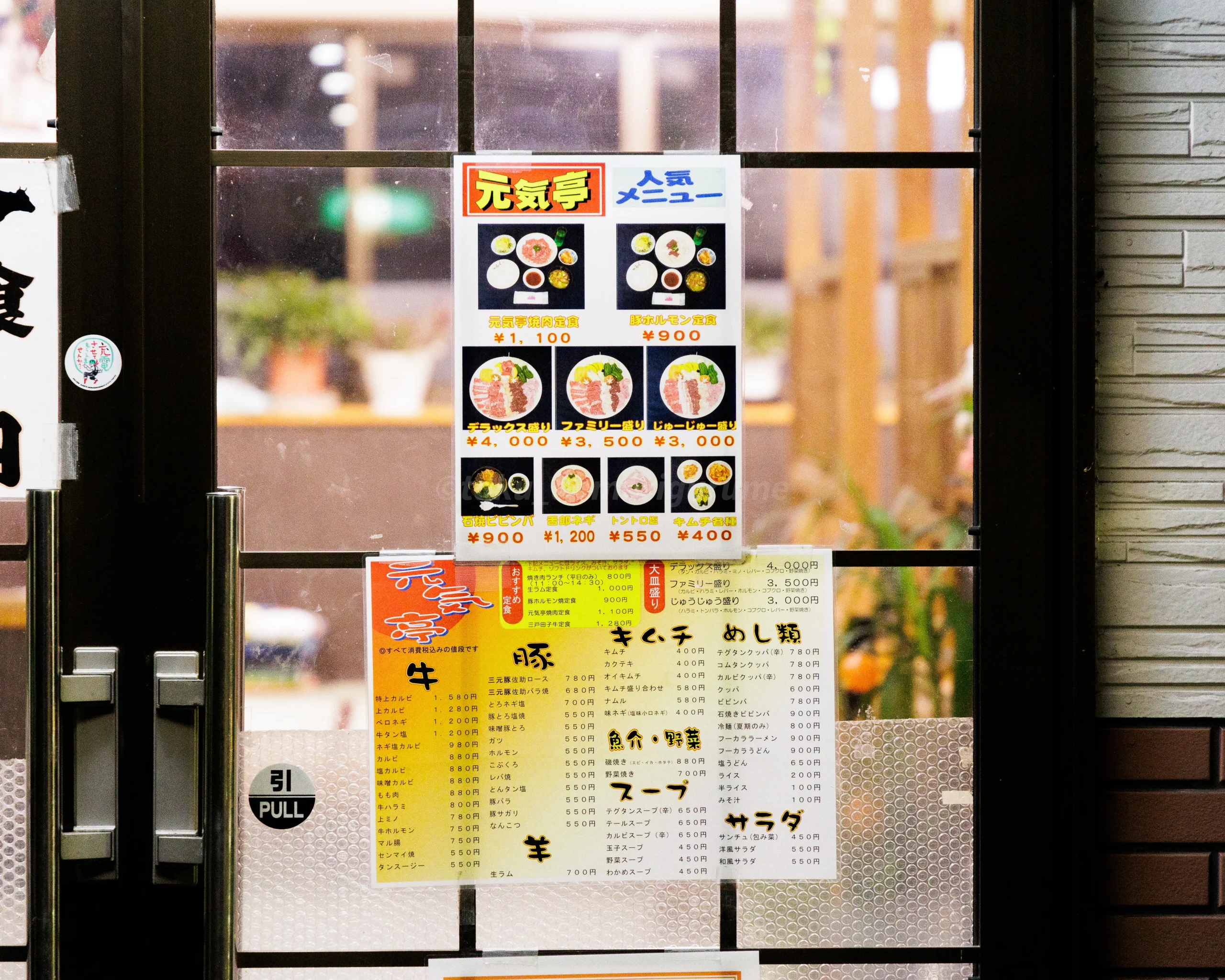 外に焼肉メニューなどが張り出されていた。ちなみに、焼肉店の利用時に、お食事処 立食(たちしょく)のメニューも頼めた(今回は焼肉店のメニューのみ注文)。