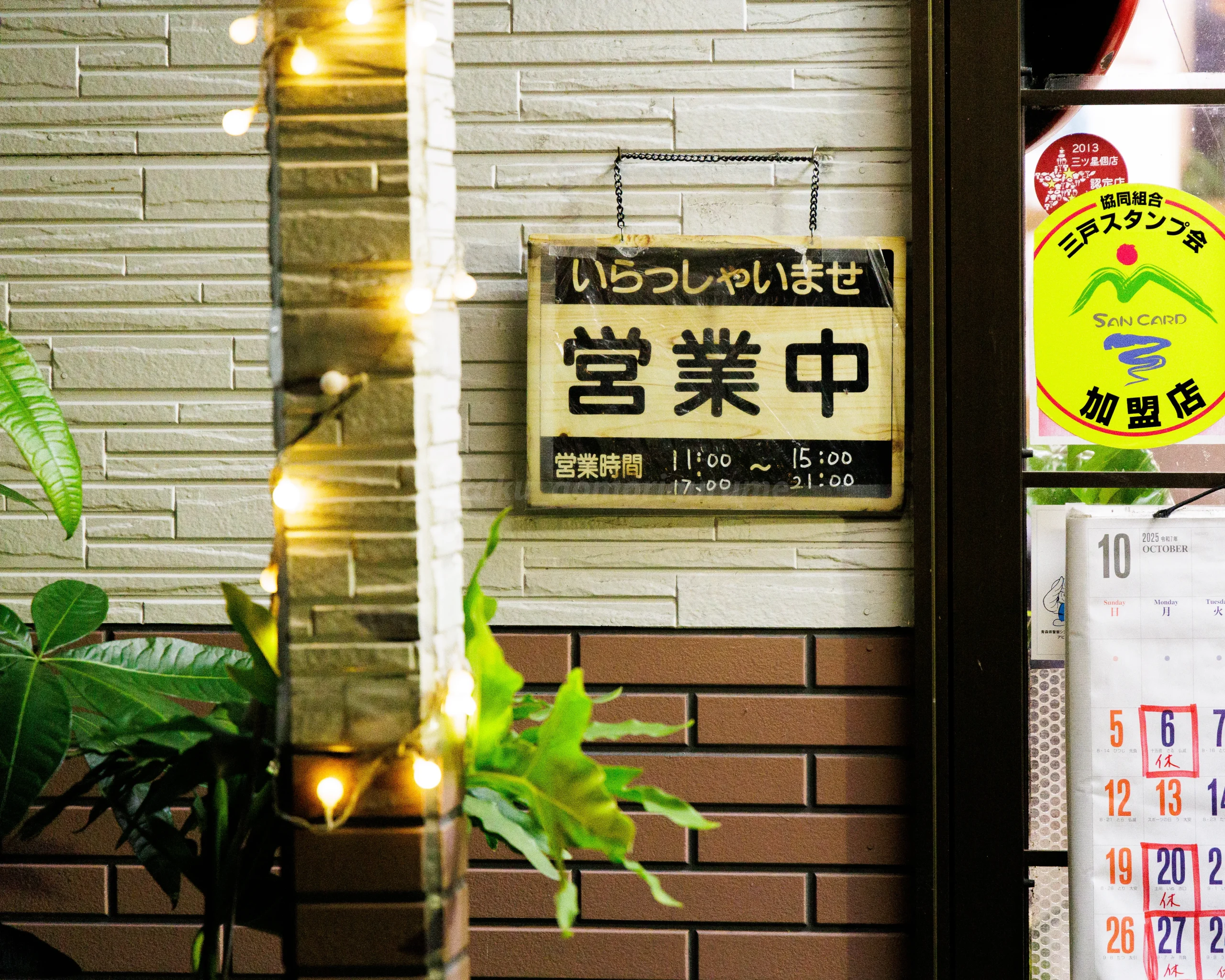 営業時間と定休日は出入口の看板および営業カレンダーに明記されており、