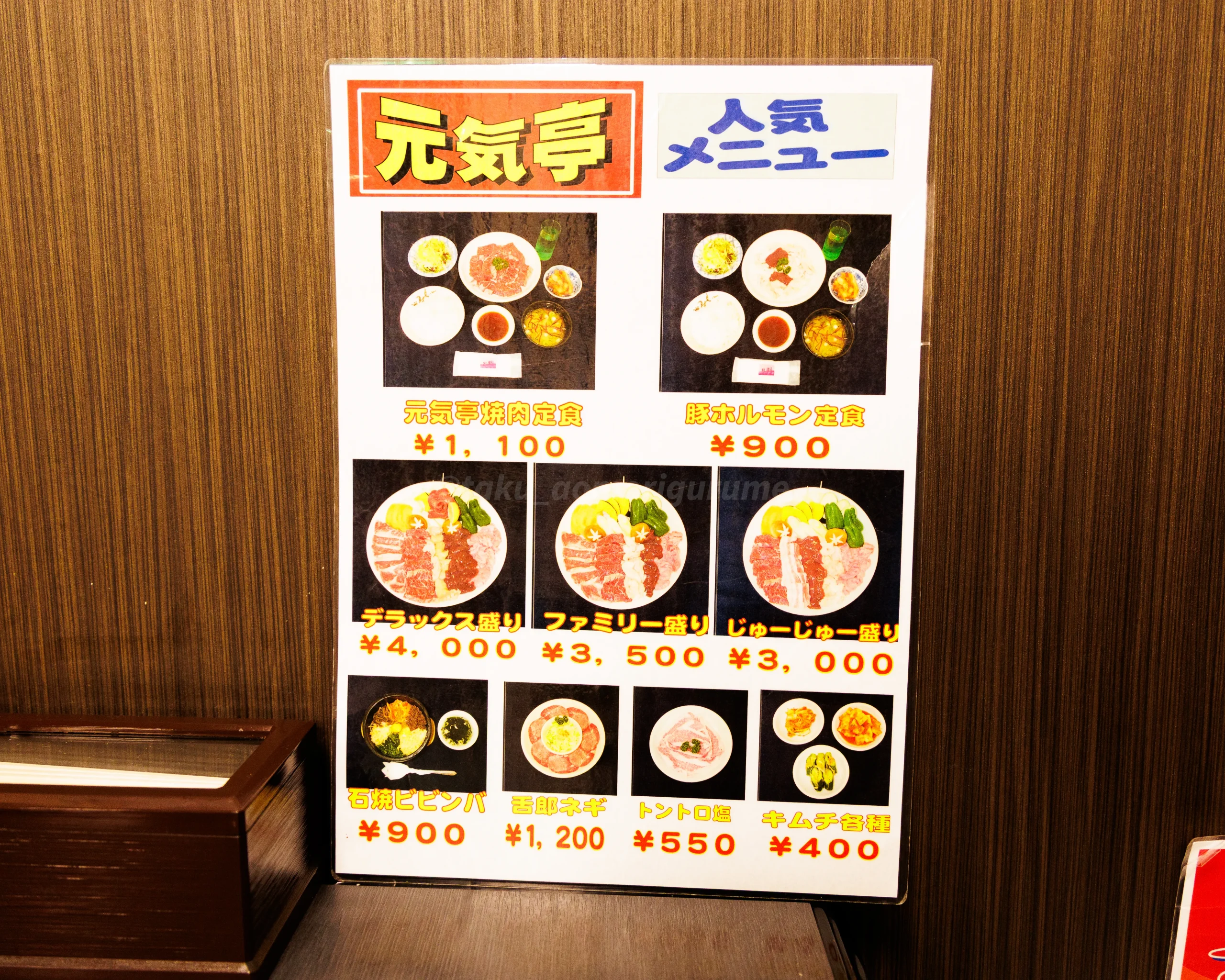 店内のフード、ドリンクメニュー(スタミナハウス 焼肉 元気亭)。