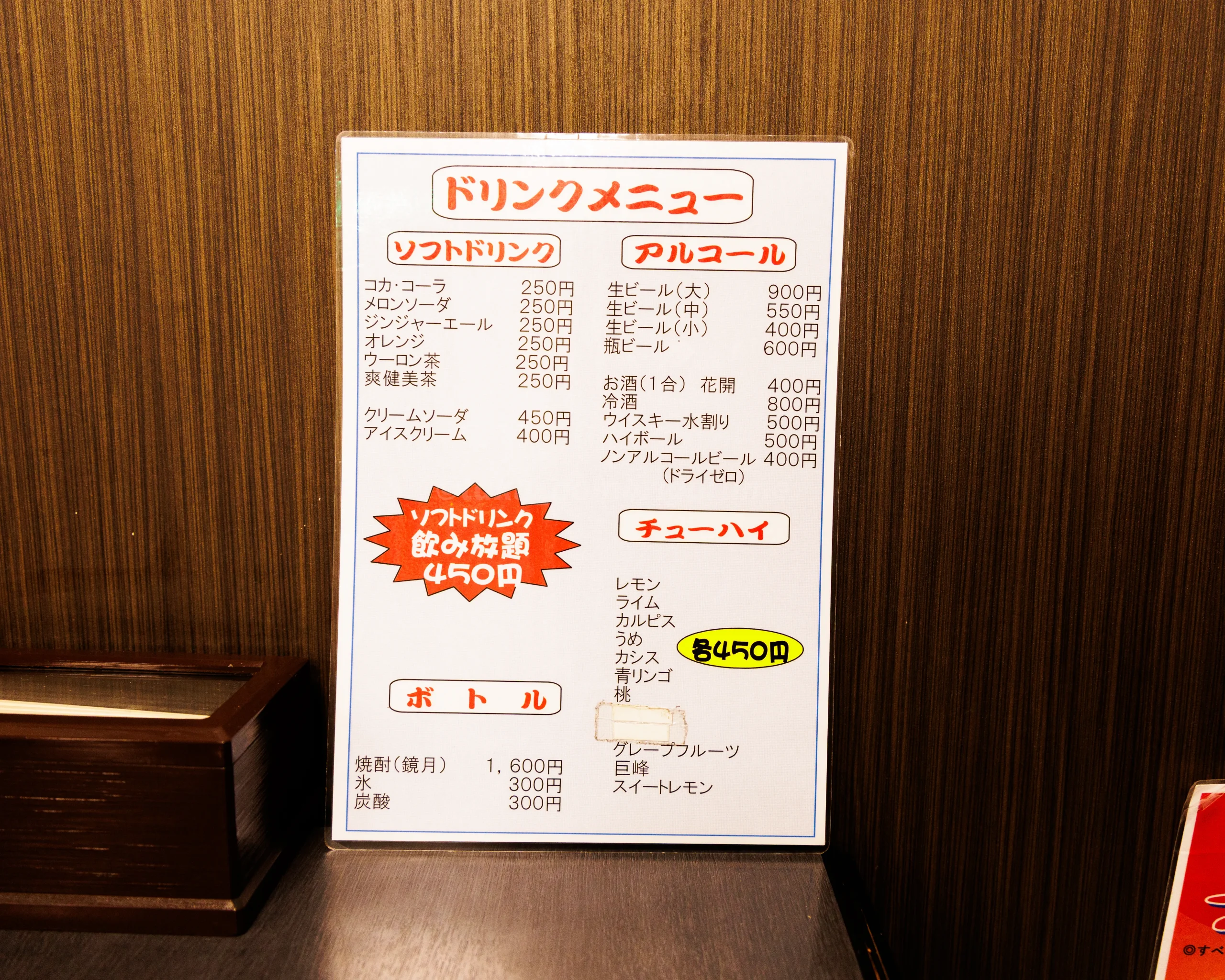 ソフトドリンク飲み放題(¥450税込)