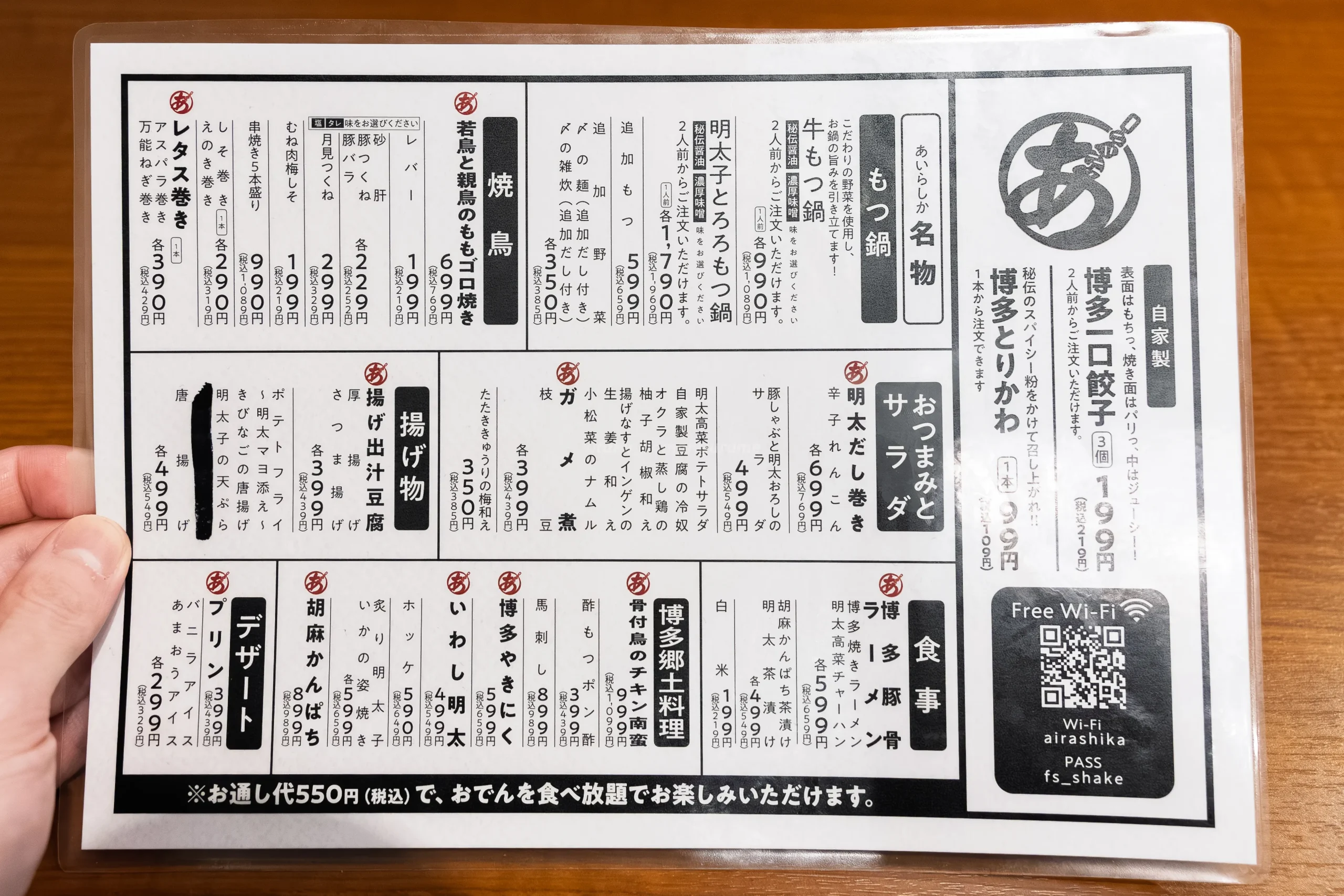名物の「もつ鍋」や「一口餃子」といった定番はもちろん、お通し代(550円税込)でおでんが食べ放題になるという、八戸でも珍しい太っ腹なシステムが導入されていました。