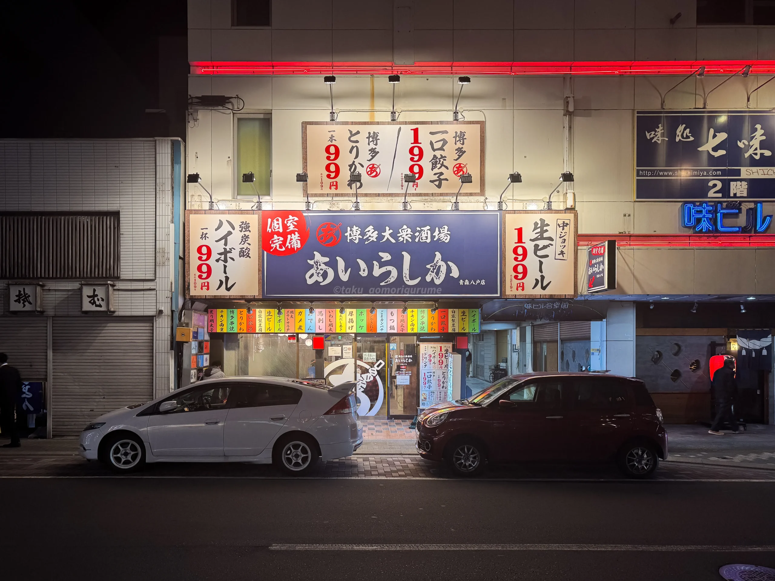 八戸市の飲み屋街にあるため駐車場はないが近隣に有料パーキングはたくさんあり。