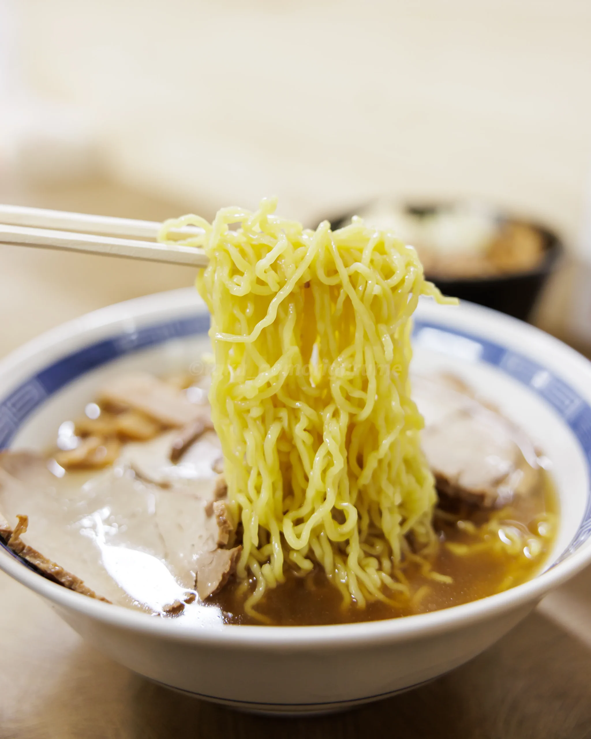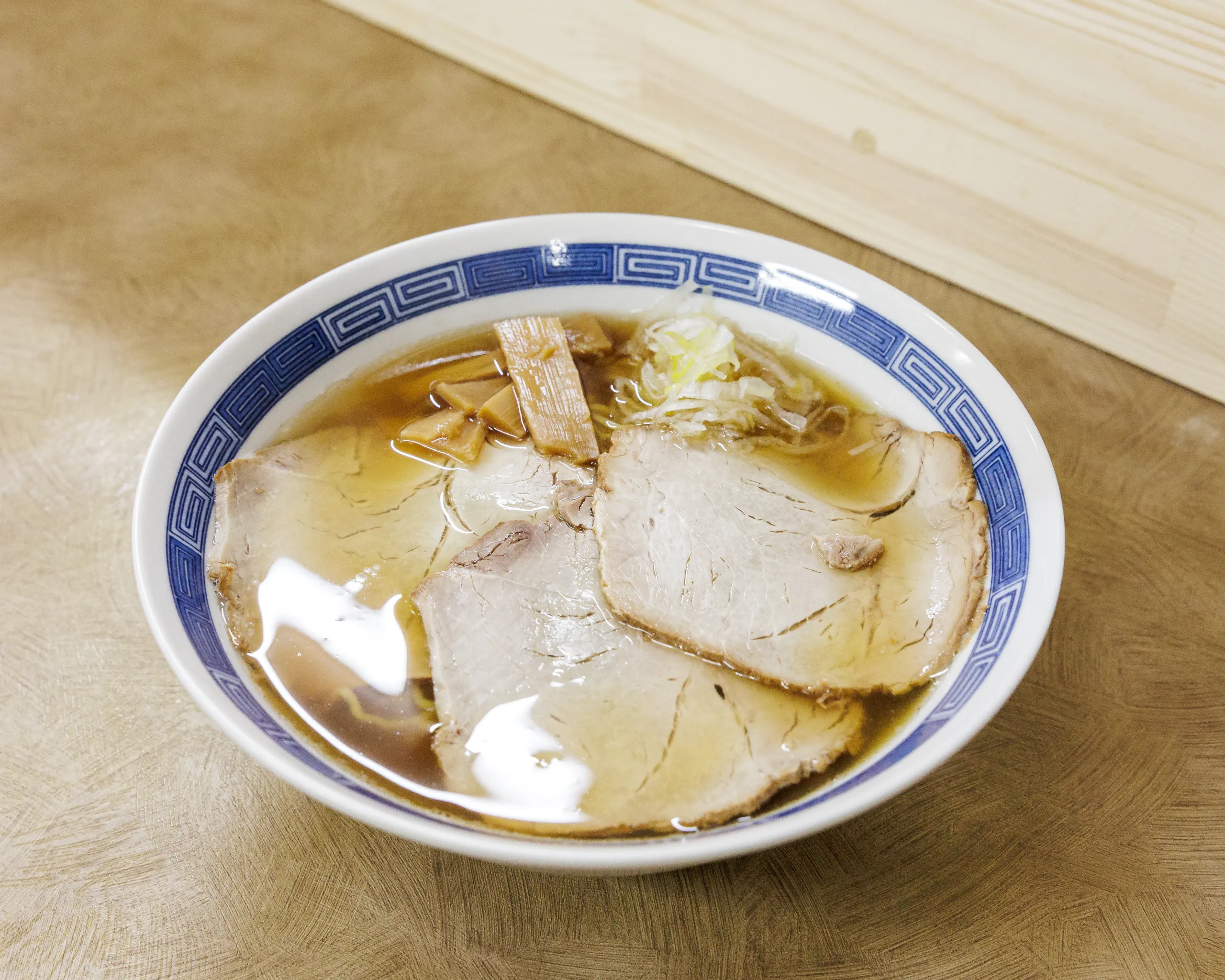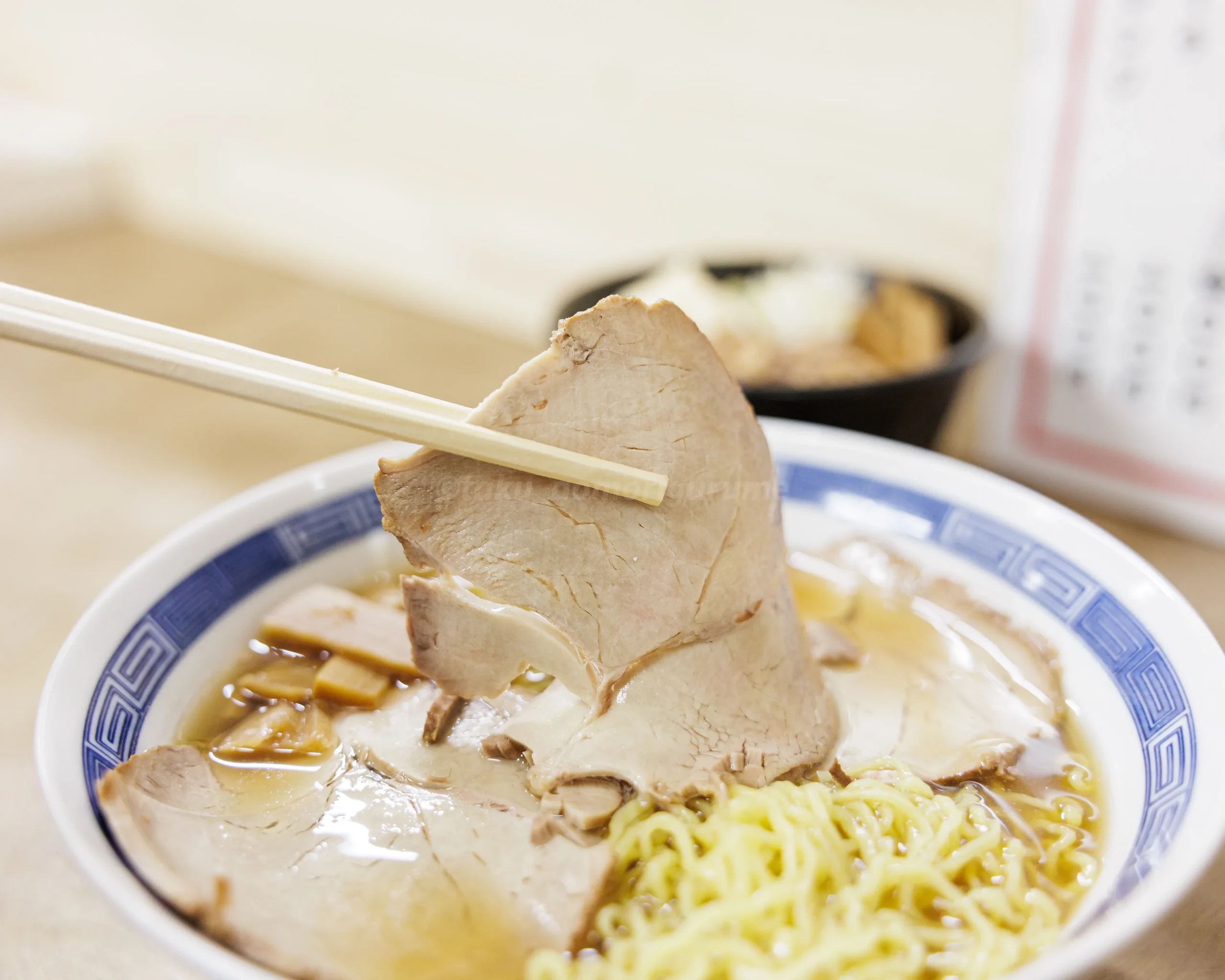 スープは甘めでシンプルな中華そばなので脂身の少ない薄切りチャーシューが逆にちょうどいい。