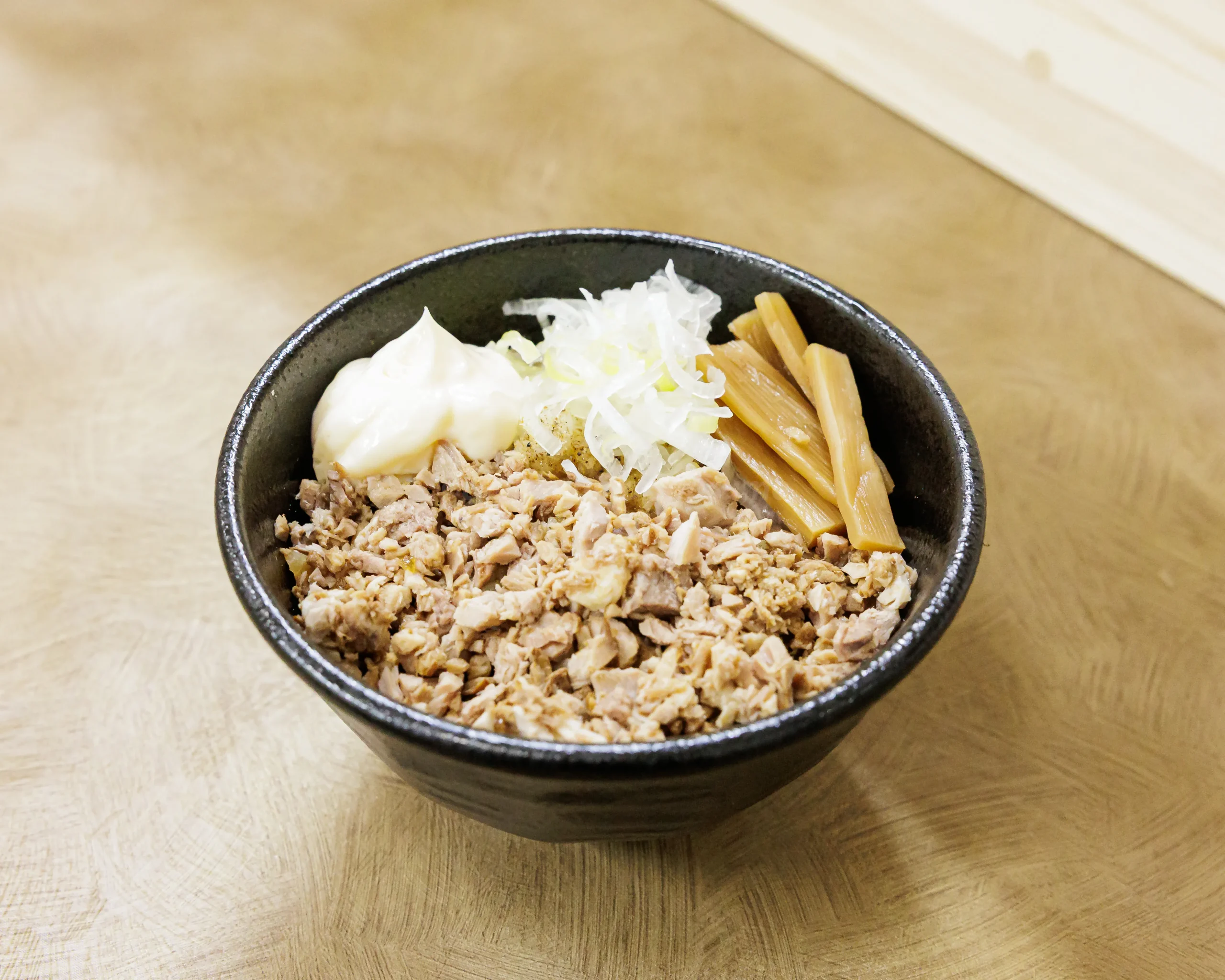 ネギメンマも混ぜて卓上の胡椒とにんにくをトッピングするのもあり。