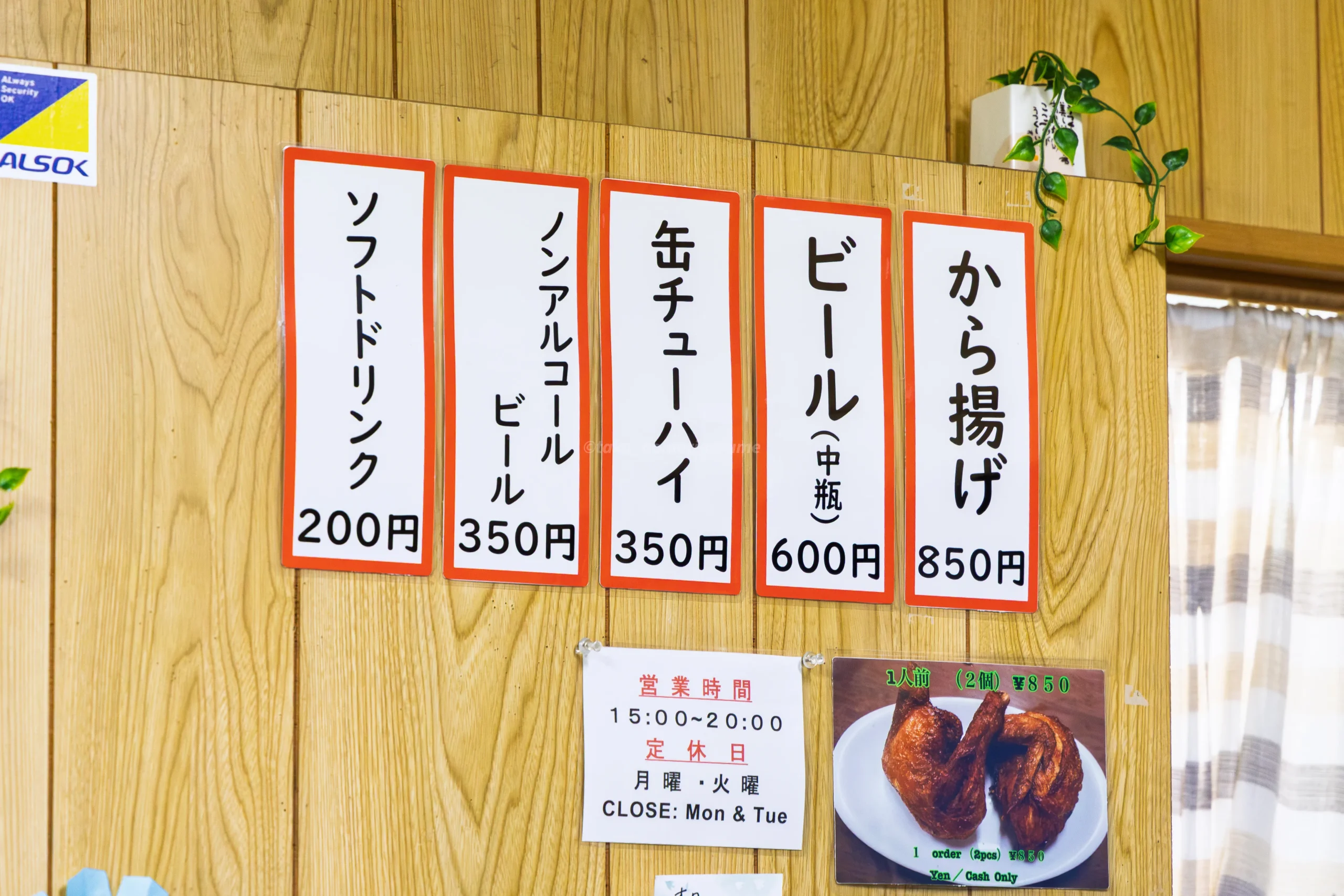 | 支払方法 | 現金のみ |