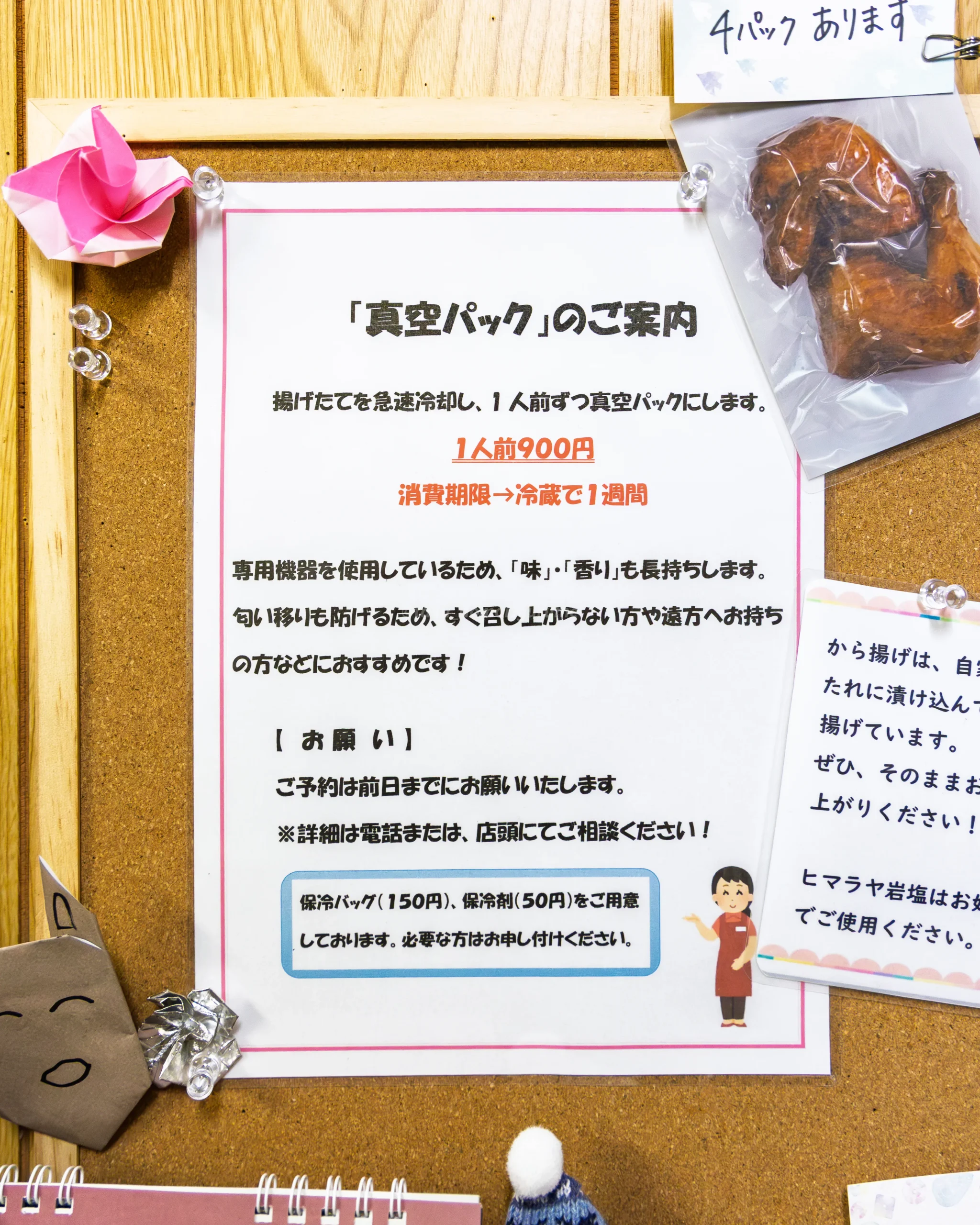 | その他 | 急速冷凍から揚げのテイクアウトは 1日前までに要予約 |