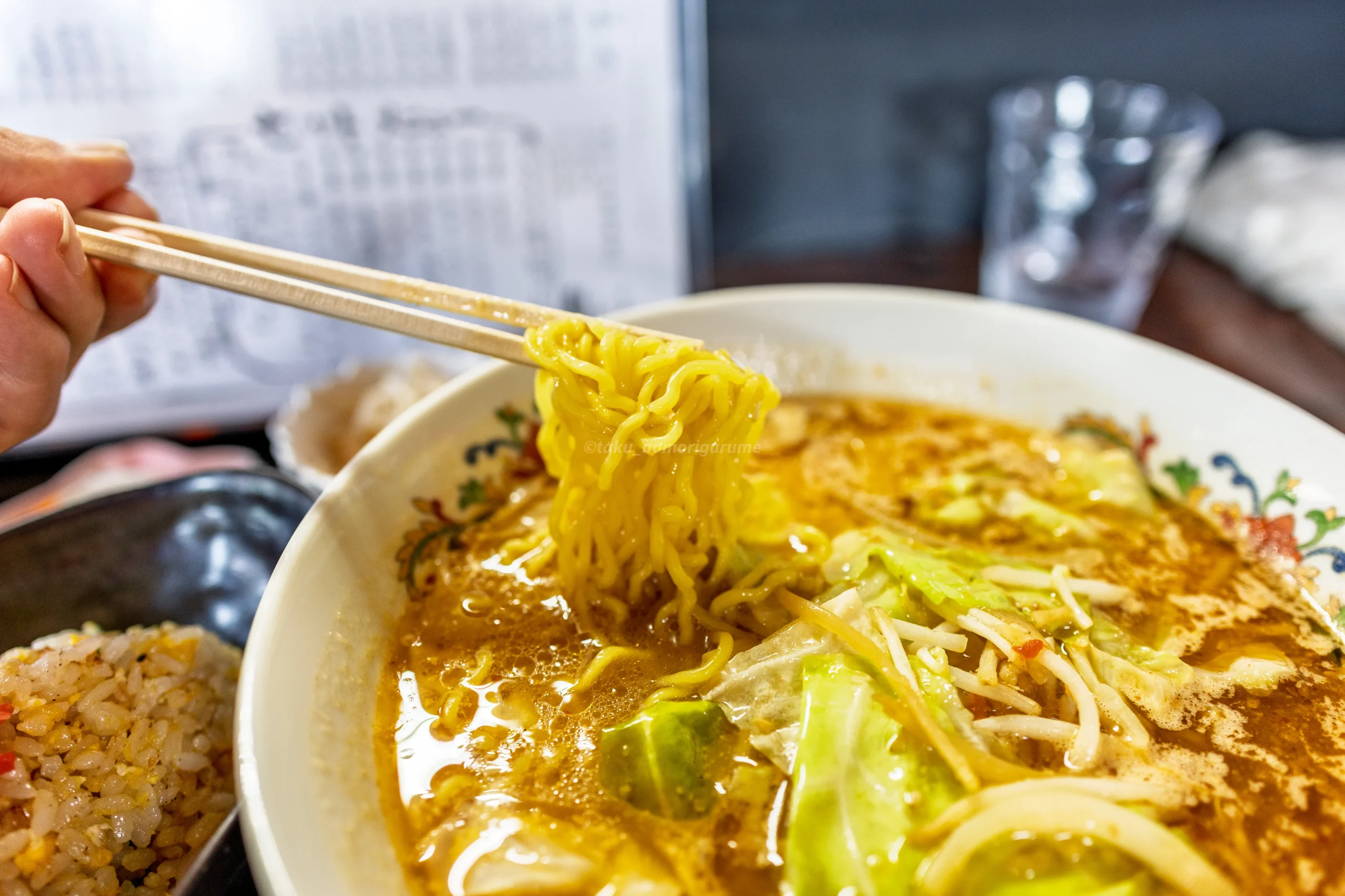 味噌ラーメンとチャーハンが付いた清水野茶屋のセットメニュー