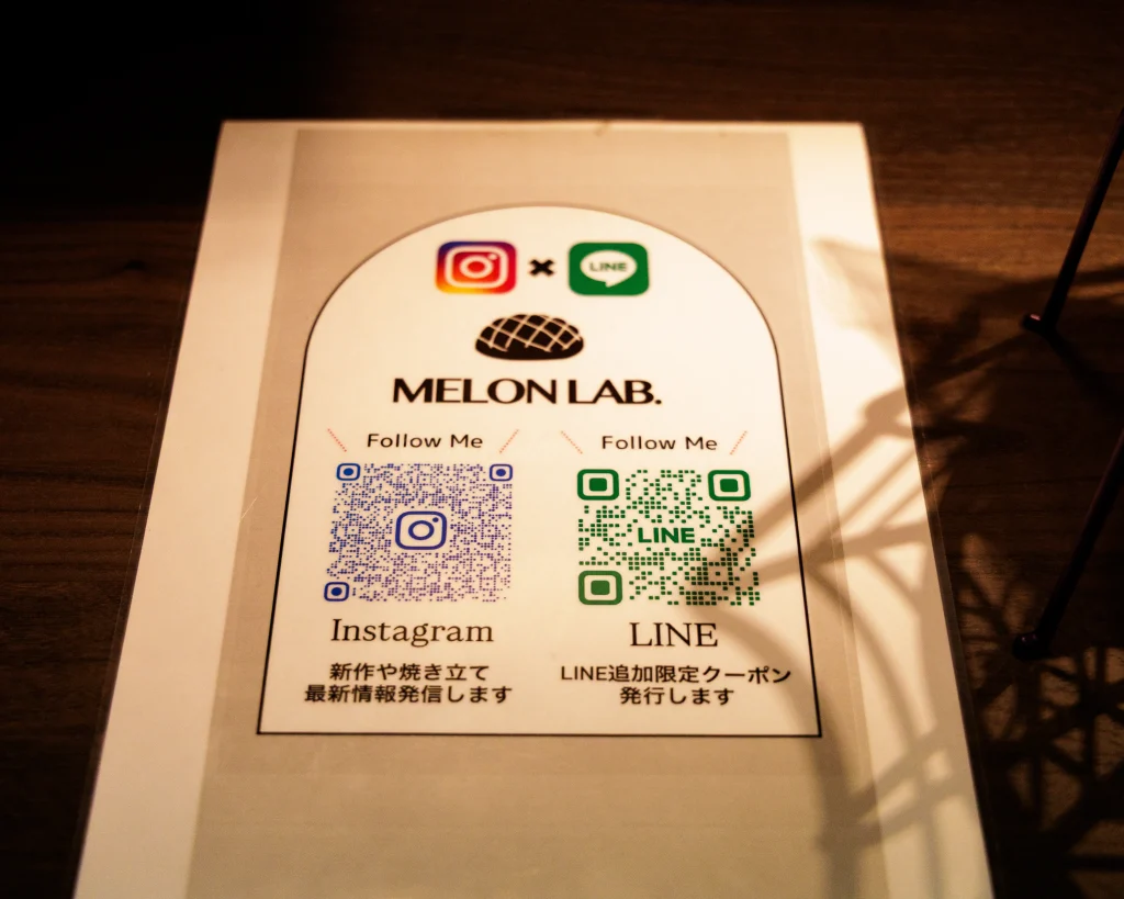 店舗の公式LINEやInstagramもあった。