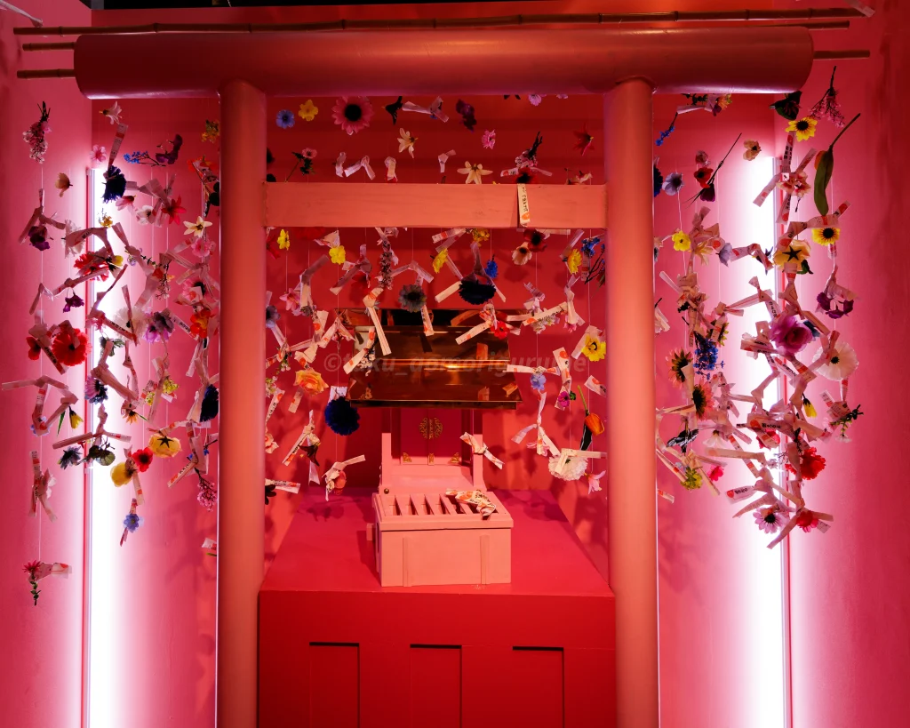 鳥居を抜けると、総ピンクの空間の中に社殿があった。