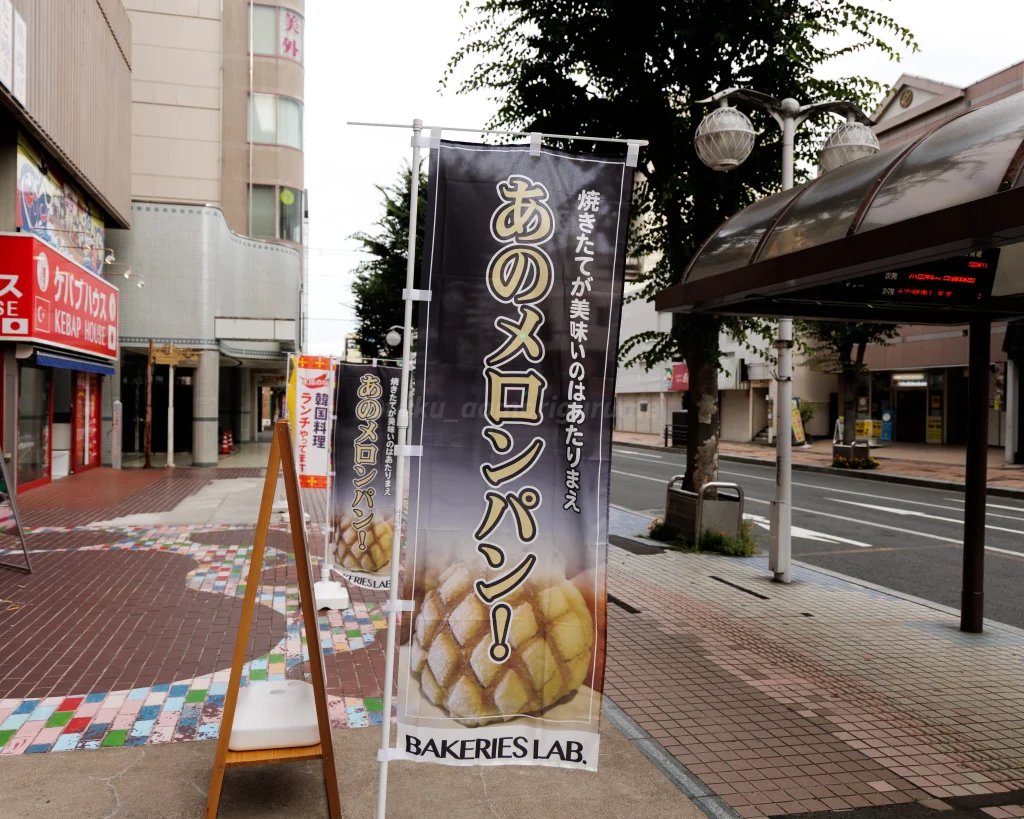 普段、メロンパンの旗は中々見かけないので、ふらっと立ち寄ってみたくなる効果があるように感じた。