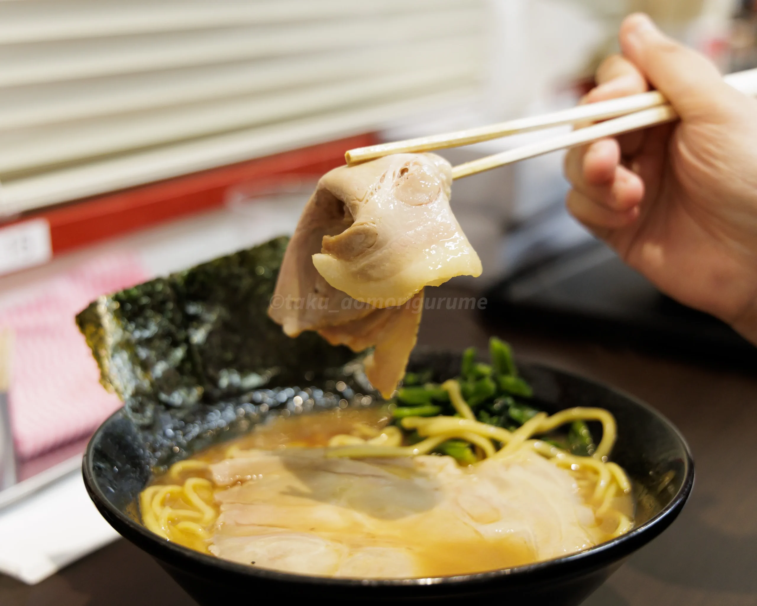 大判ながらも食べやすい厚みにスライスされた豚バラ肉は、脂身と赤身が交互に層を成しており、濃厚な豚骨醤油スープに負けない存在感。