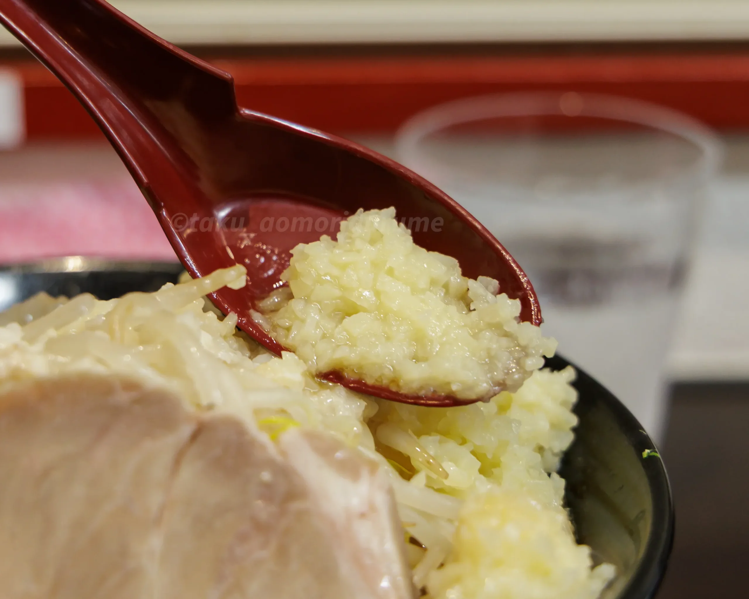 青森県未上陸の本家のラーメン二郎を食べている人がどれほどいるのかは不明だが、その系統の味はしっかりと感じられた。