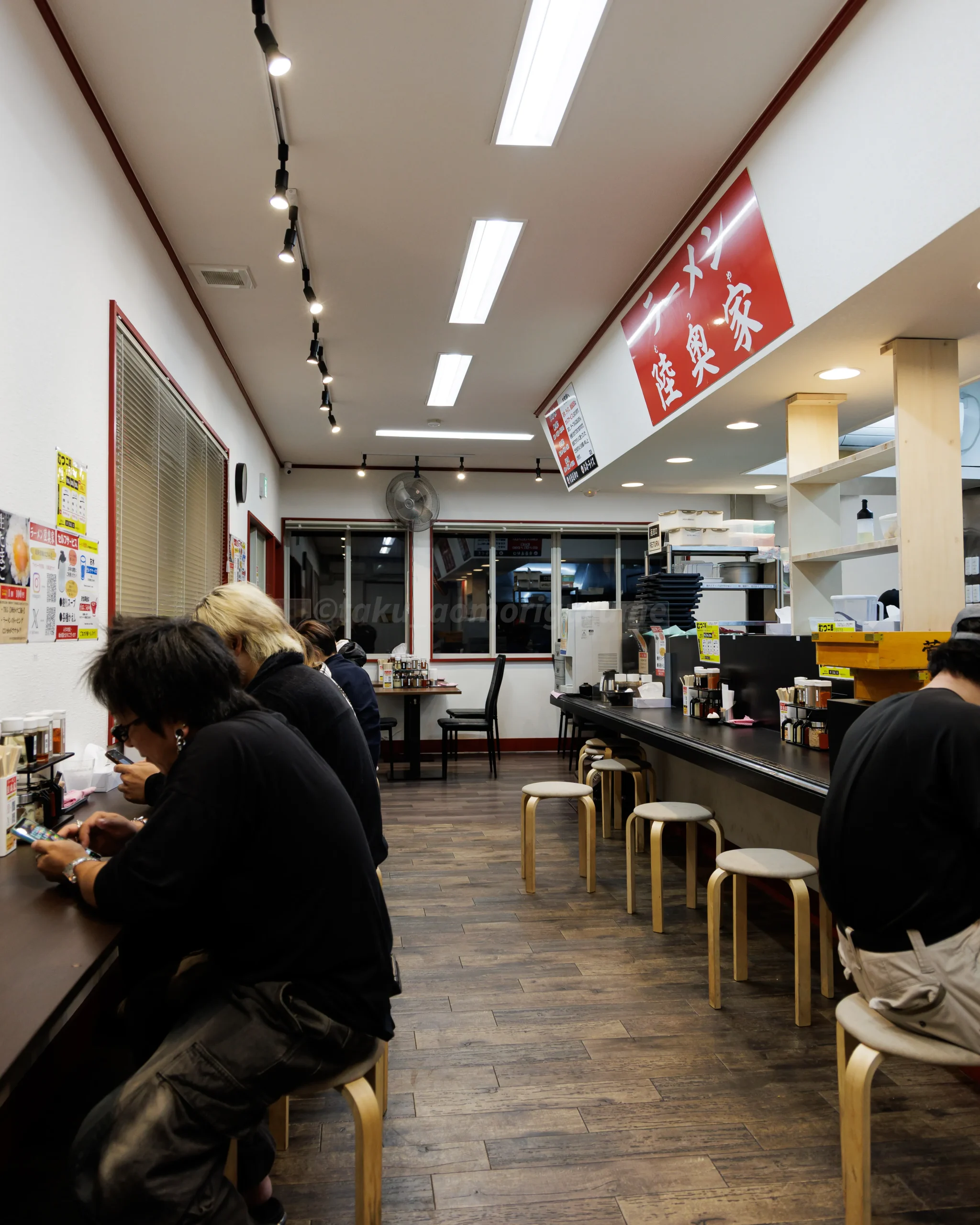 店内はカウンター席のみで10席以上、2名掛けのテーブル席が4卓あり、回転の速さも相まってか、比較的座りやすいレイアウトになっている印象を受けました。