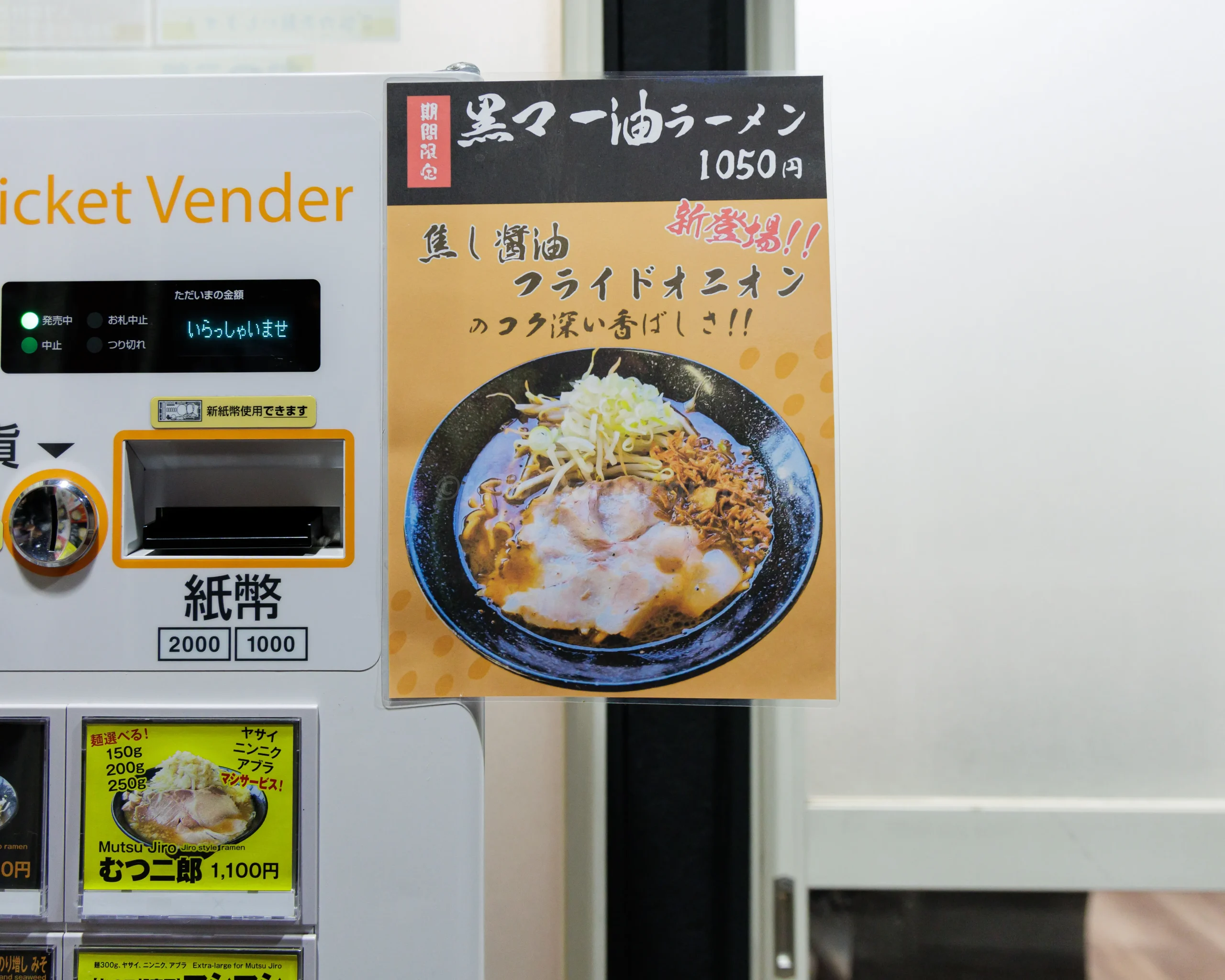今回はむつ二郎の食券の他に、むつ二郎専用マシマシ(¥150税込)の食券も追加。
