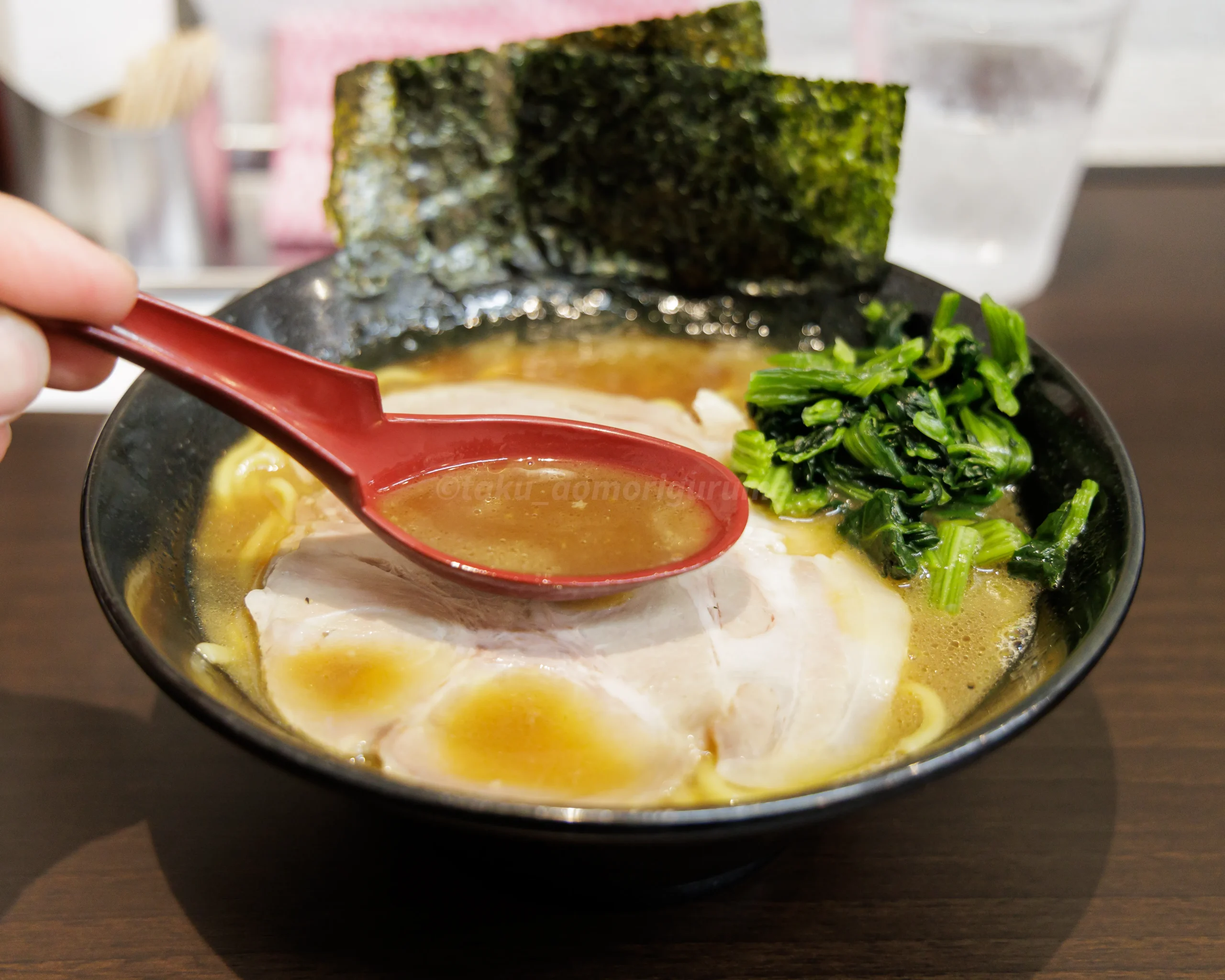 安定感のある非乳化系豚骨と醤油のパンチのあるスープの味わい。