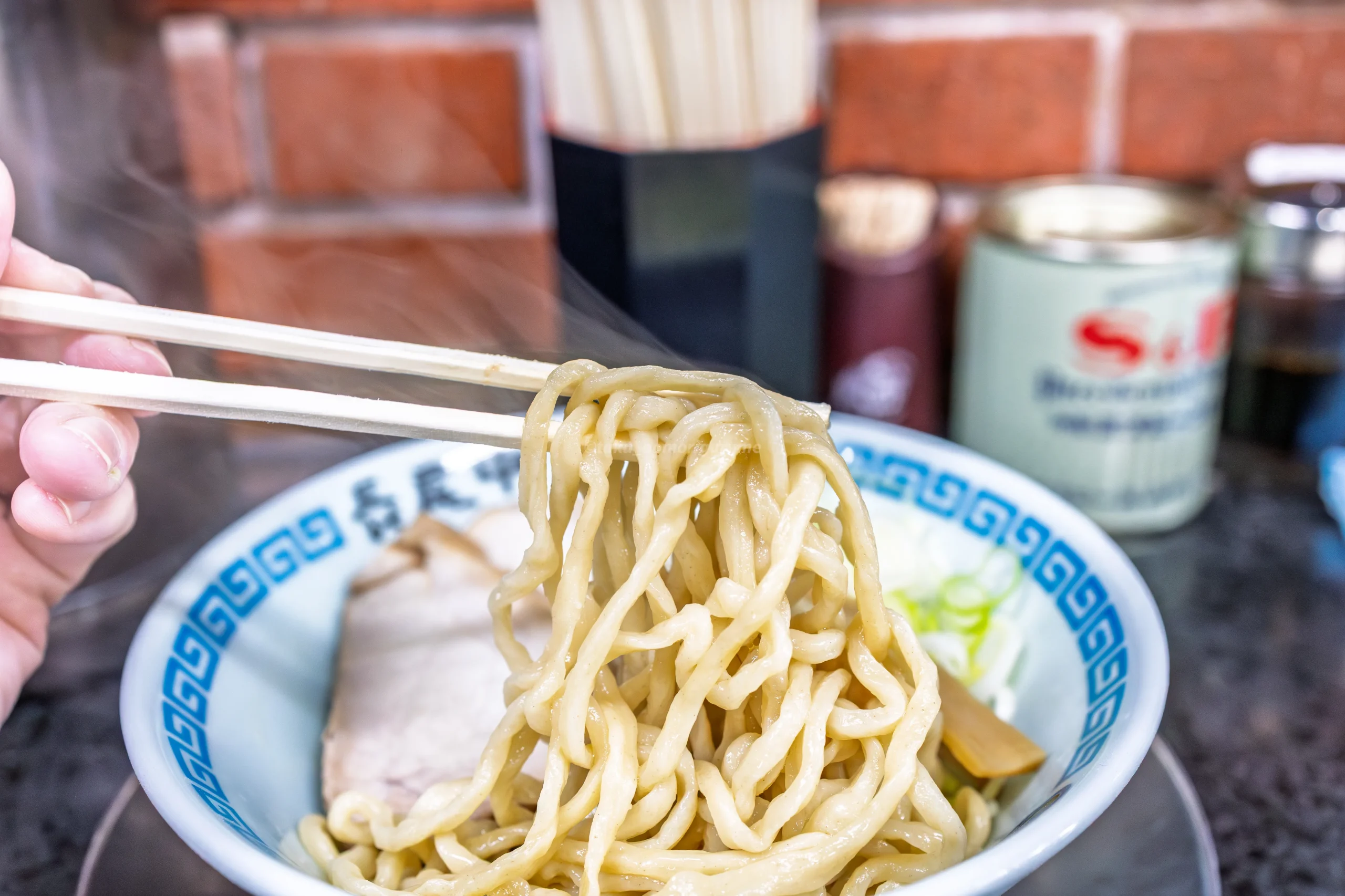 麺の特徴は、硬めに茹でられたワシワシ系の太麺。