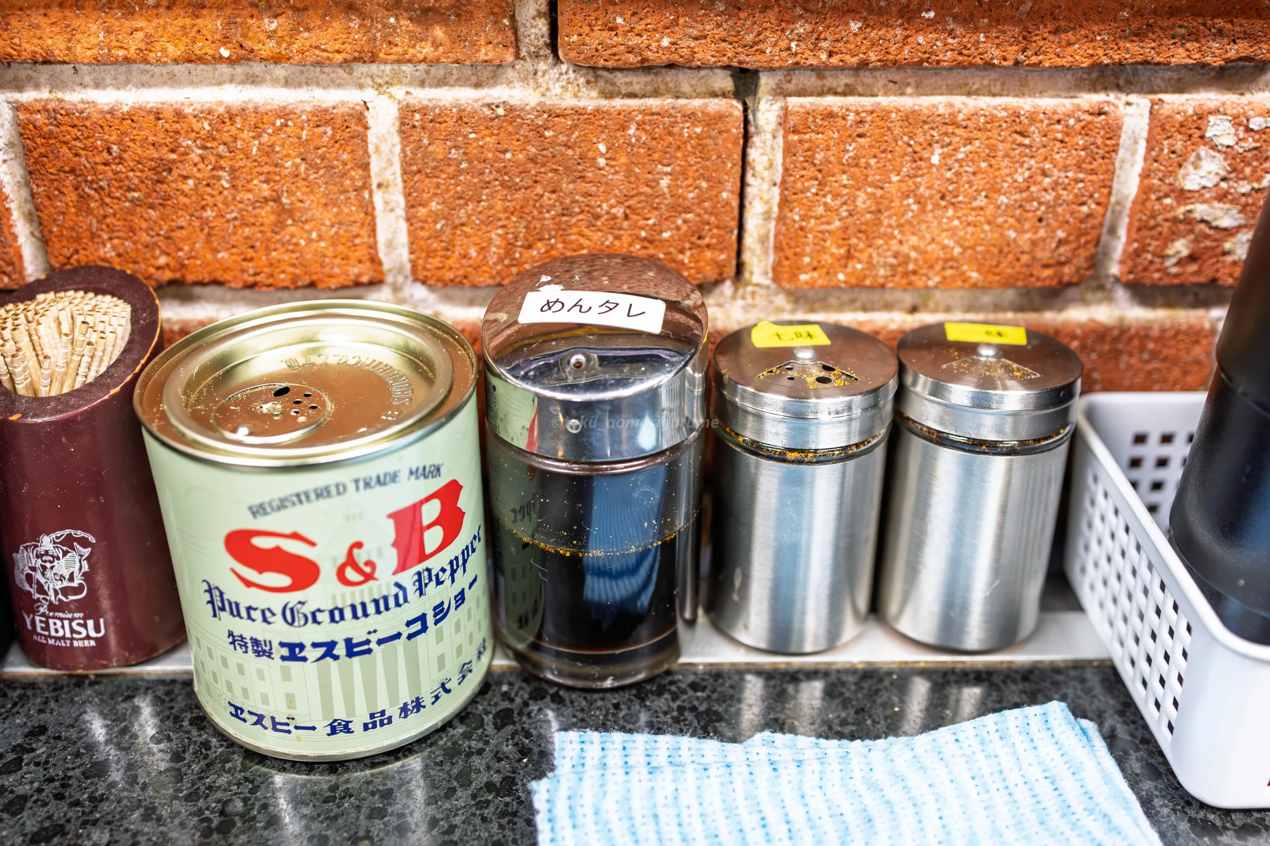 卓上には、胡椒・めんタレ・七味・一味が置かれていました。