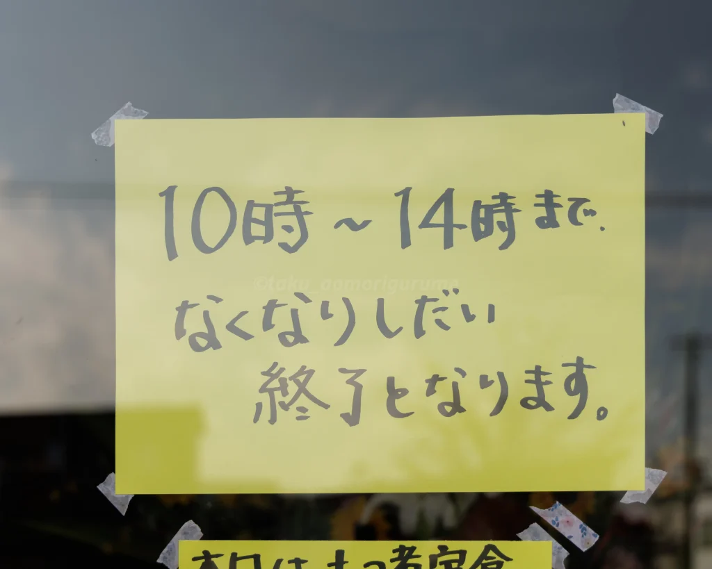 通常のクローズ時刻は14時だが、定食などのご飯ものが無くなり次第終了なため、確実に食べたい方はオープン時刻の訪問をオススメしたい。