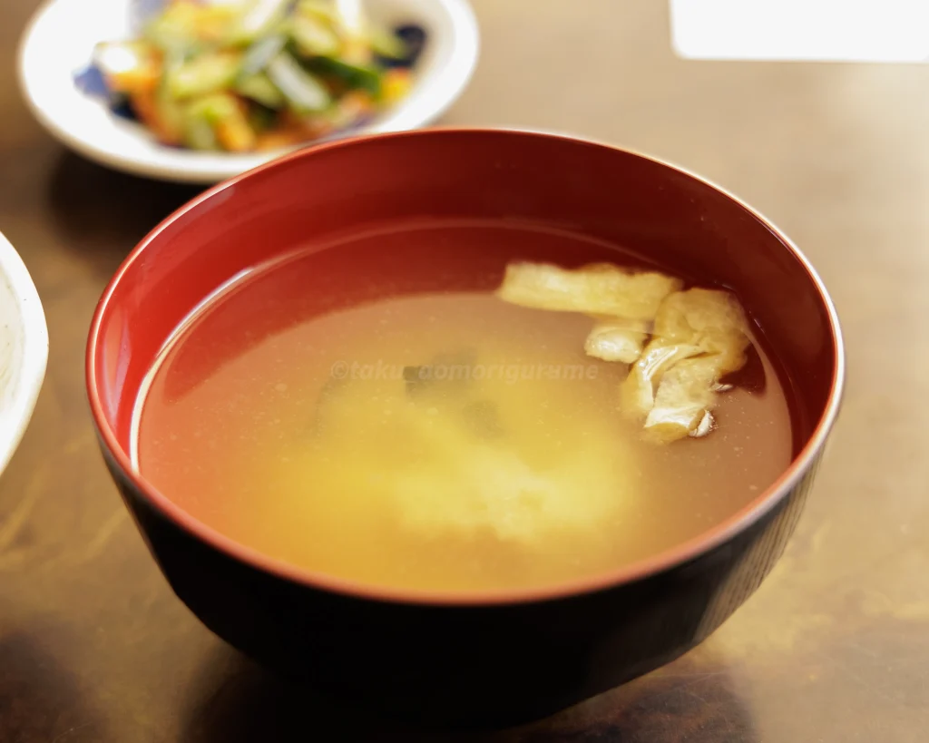 写真は同時に頼んだ日替わり定食についてきた味噌汁だが、当然ながらもつ煮定食にも味噌汁はついてくる。