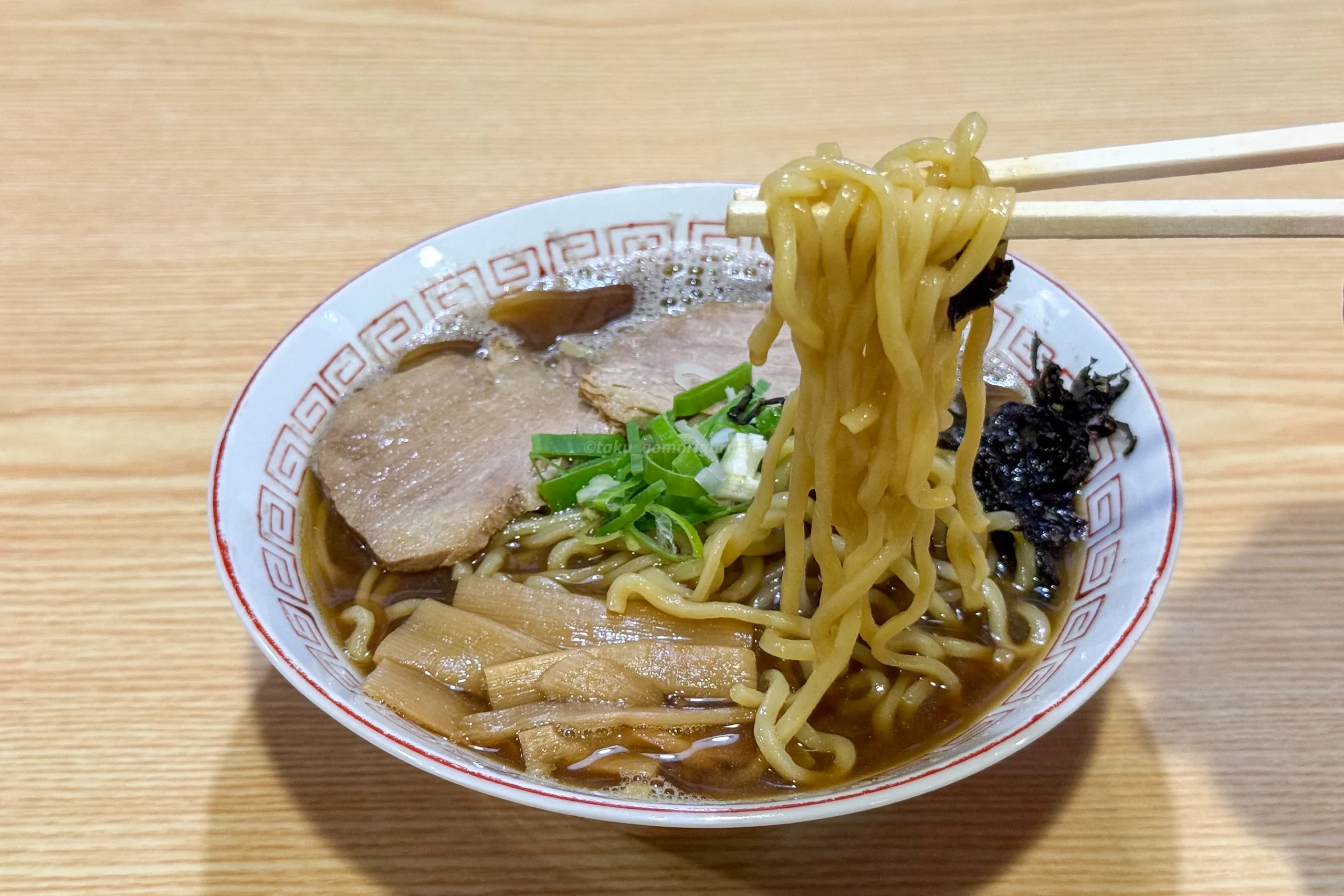 チャーシューを煮込んだタレをスープに活用しているそうで、豚系の出汁も感じられる上に、ベースとなる香味野菜と鶏ガラを使用したスープの中に、しっかりと煮干しの風味も効いている。