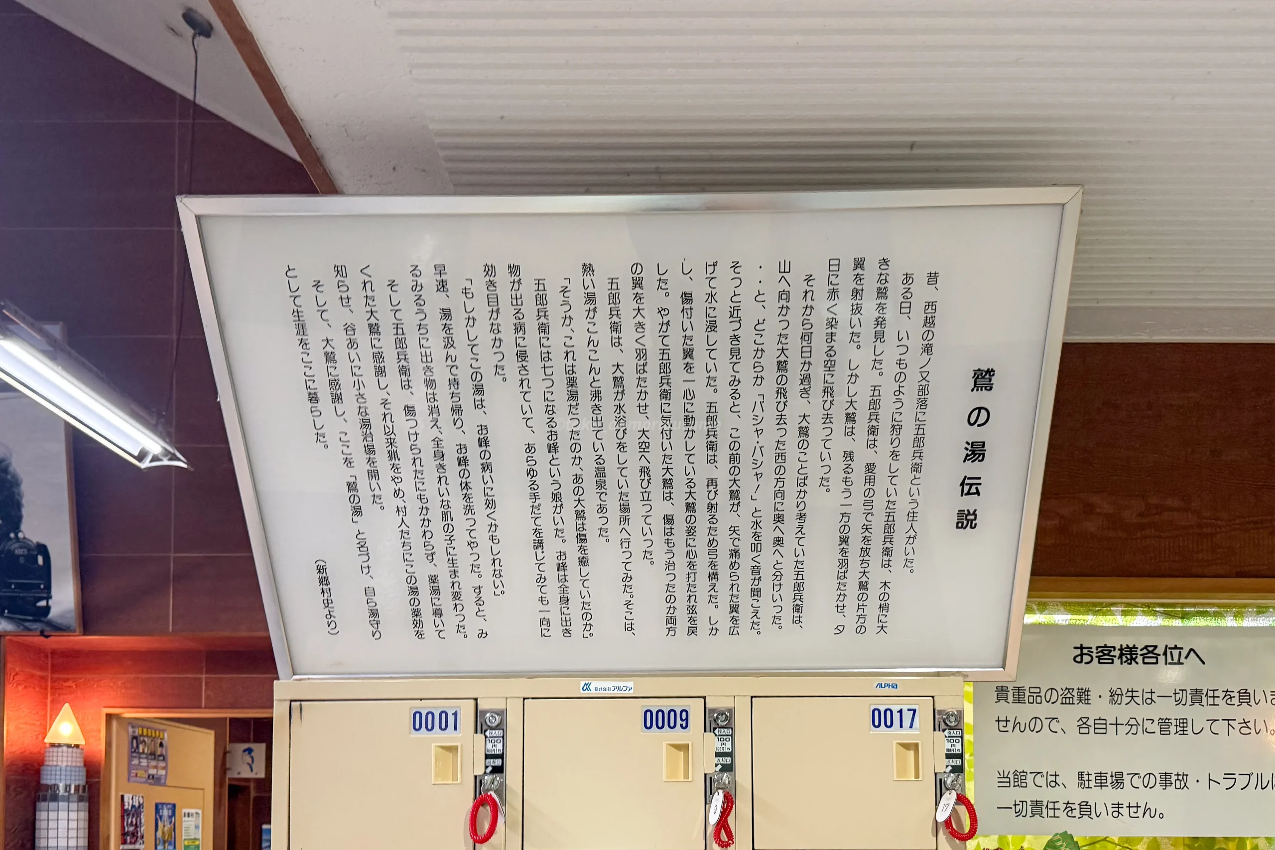 フロントに掲示されていた、鷲の湯伝説についての説明文。