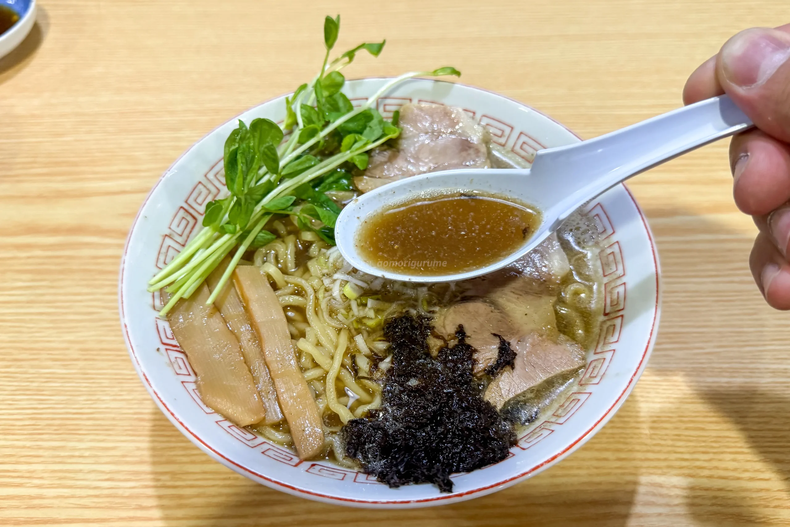 一口飲むと、鶏油のまろやかな口当たりとともに、鶏出汁の風味が強く感じられた。