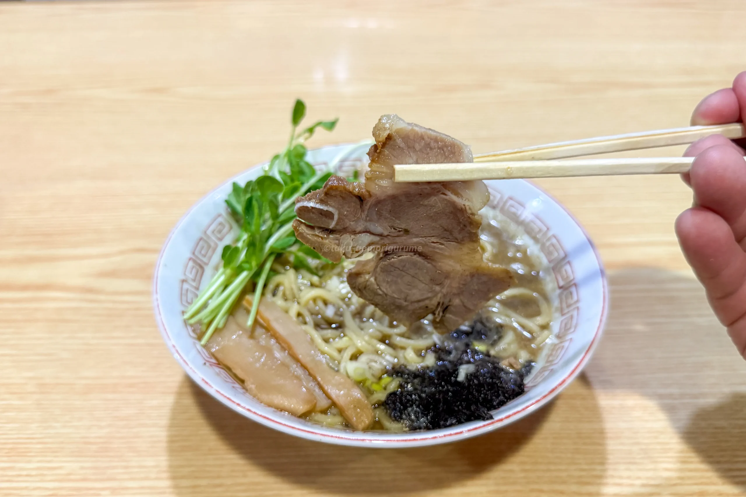 チャーシューも適度にサシが入っていてスープと麺と一緒に食べるのにうってつけ。